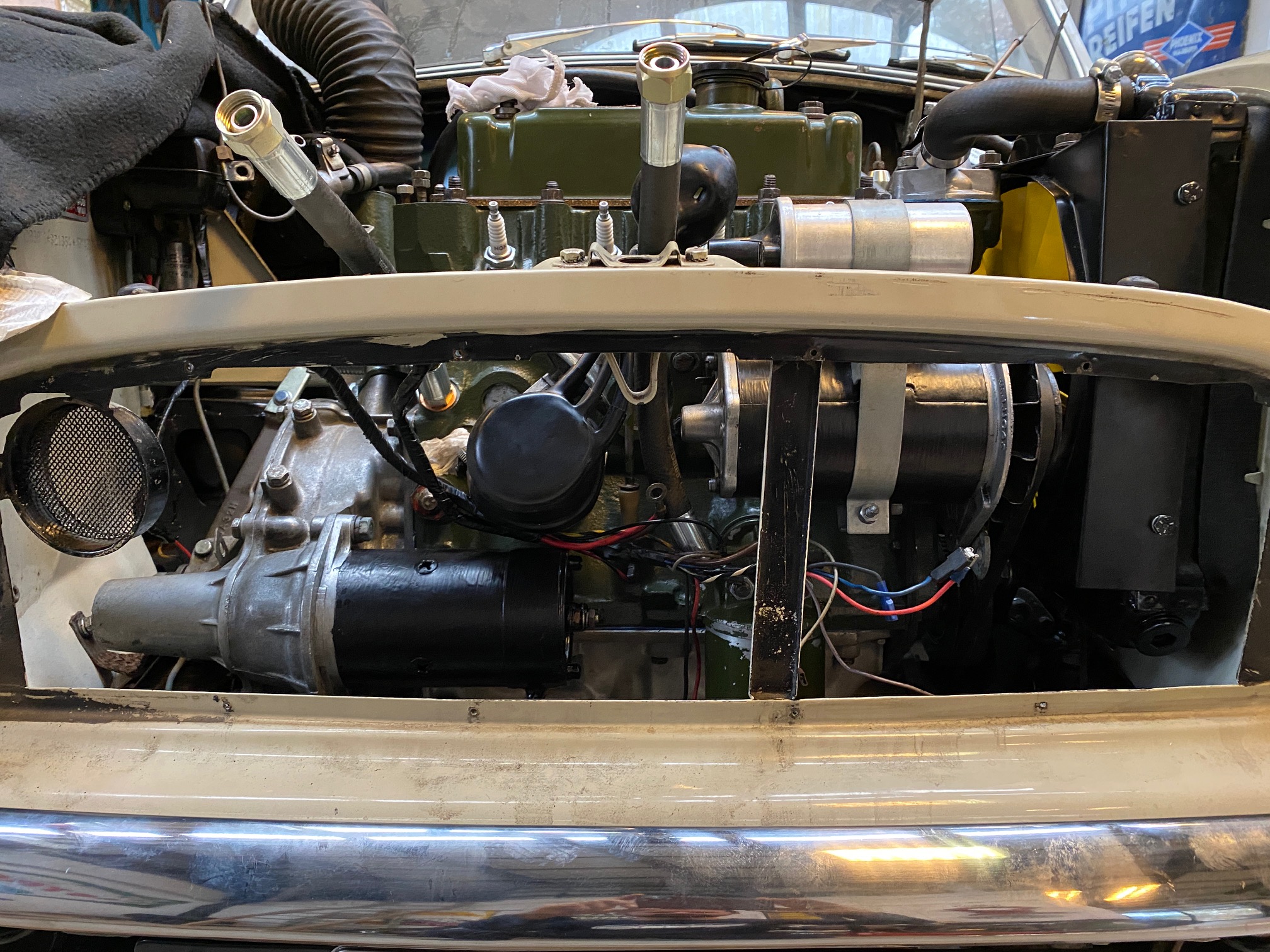 Saubere Einbauten! Wenn man die Strebe versetzt und nicht die 50mm tiefen Varianten des Kühlers verwendet passt das Teil bestimmt ohne Probleme. Angesichts der Tatsache dass ich aufgrund höherer Verdichtung als bei der Serie doch lieber den Kühler montieren möchte, werde ich wohl die flachere Version samt Thermostat verbauen. Dank an Alle für die Tipps!