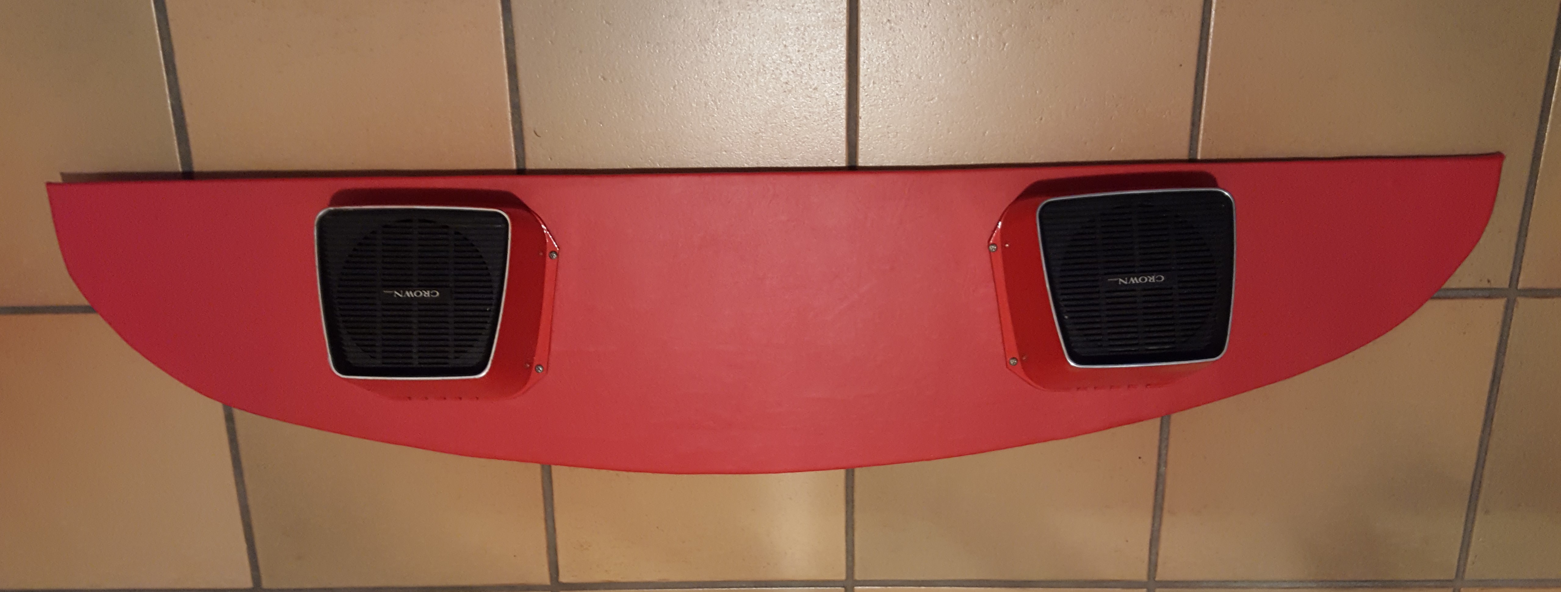 Die Heckablage kann nach Ausbau der Rücksitzlehne ganz einfach gegen die alte ausgetauscht werden. Die Lautsprechermarke ist Crown (Japan).