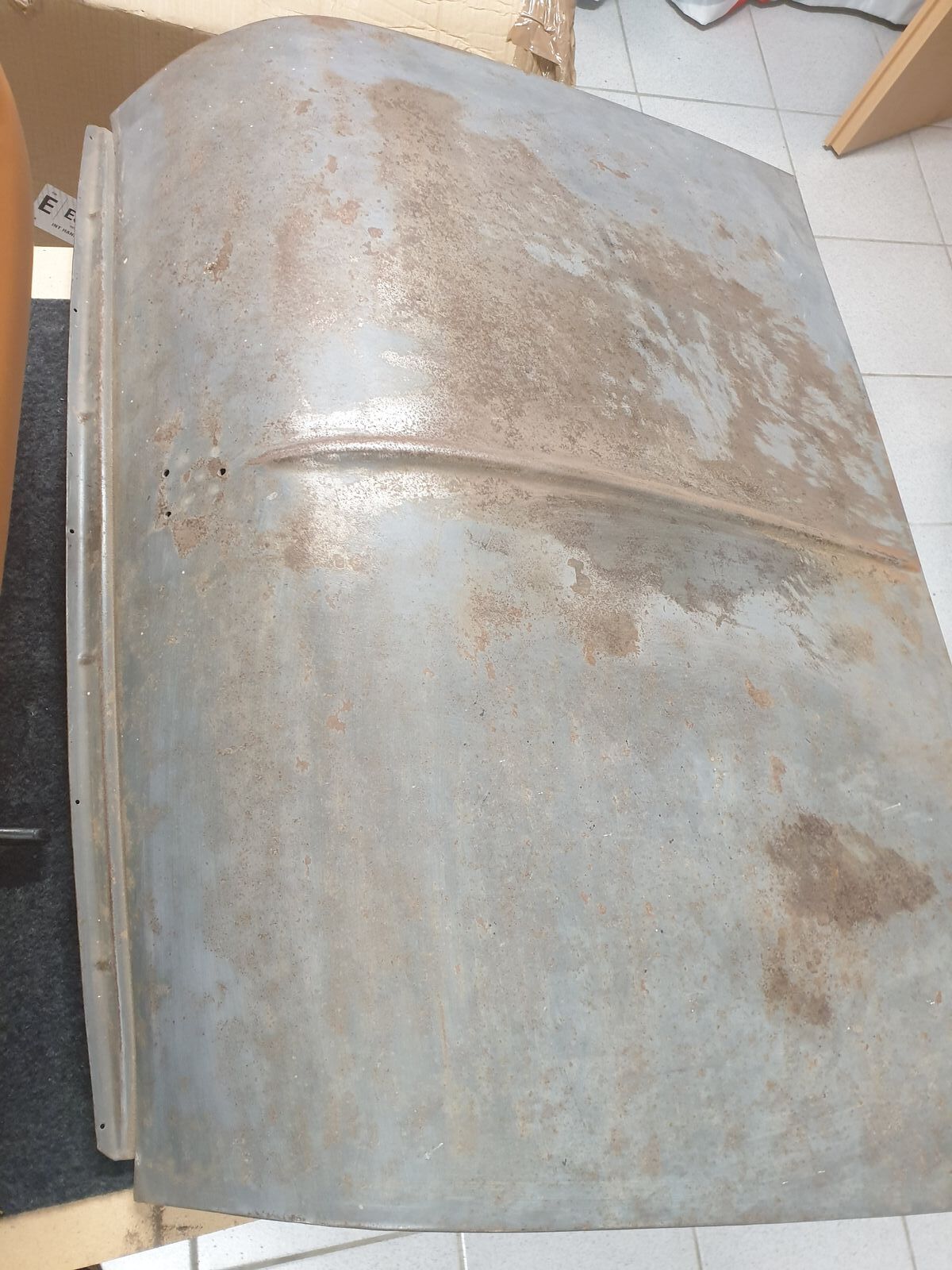 hatte mir für meine Restauration eine gebrauchte Motorhaube besorgt. Die konnte ich leider nicht montieren, da die Aufnahmen der Scharniere nicht passen. Habe dann erfahren, das die Haube vom MK II sein soll. Der Vorbesitzer hatte den Lack runter geschliffen und über die Zeit hatte sich Flugrost gebildet. Dieser kann aber problemlos runter geschliffen werden. Die Haube hat keine Dellen und ist nicht verformt. Vielleicht kann ja jemand das gute Stück gebrauchen.