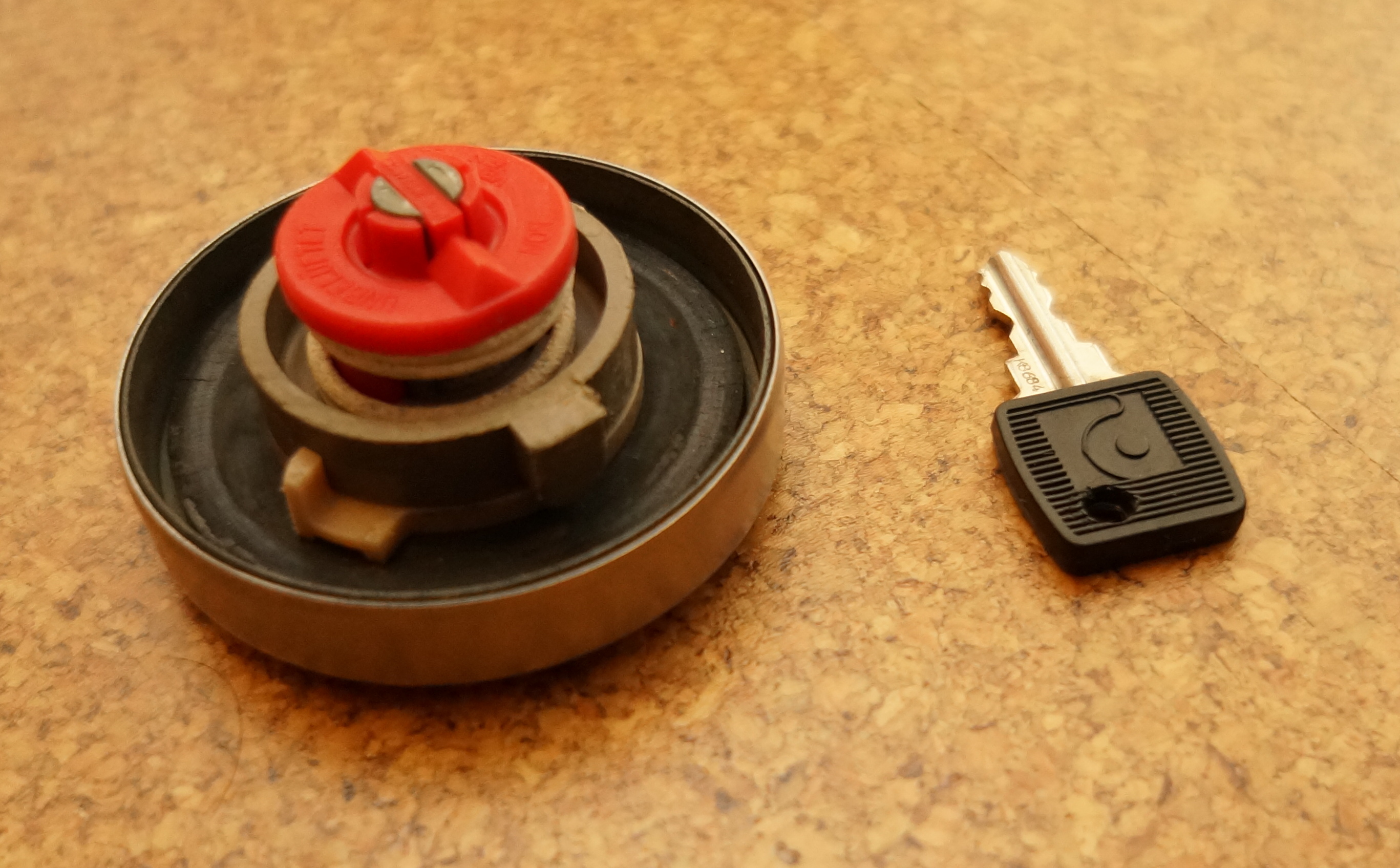 1x Tankdeckel unbelüftet mit einem Schlüssel, die Dichtung ist leich spröde, gebrauchsspuren sind vorhanden - VHB 8€ + ggf. Versand