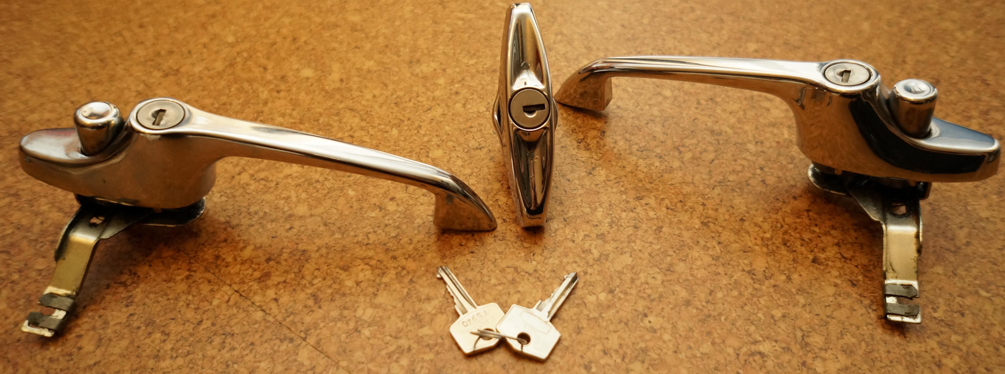 1x Set Türgriffe und Heckgriff mit Schlösser und 2 Schlüsseln, Fahrertür ist der Zylinder bzw. der Griff ausgeschlagen dadurch kann man den Zylinder ohne Schlüssel drehen und auf / abschließen, Beifahrer und Kofferraum sind noch i.O - VHB 65€ + ggf. Versand
