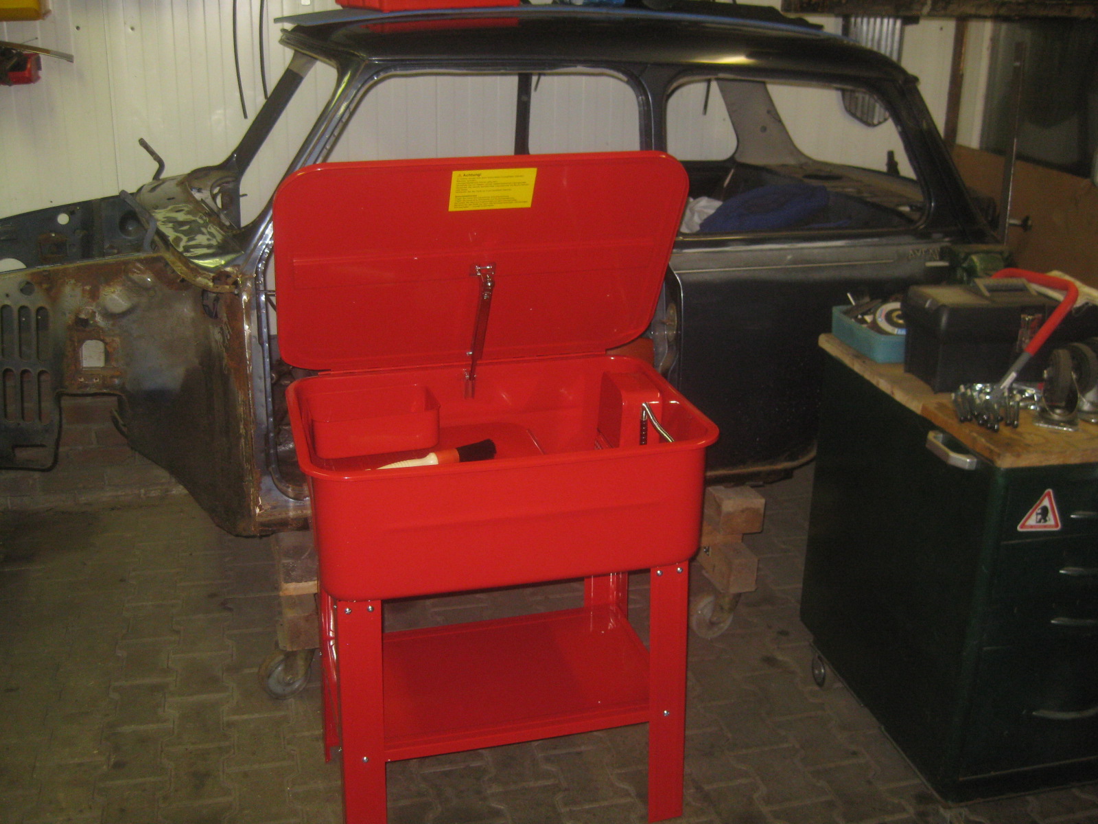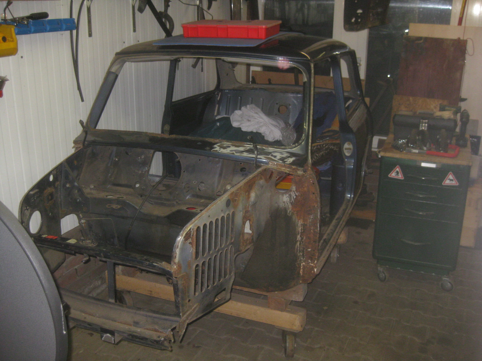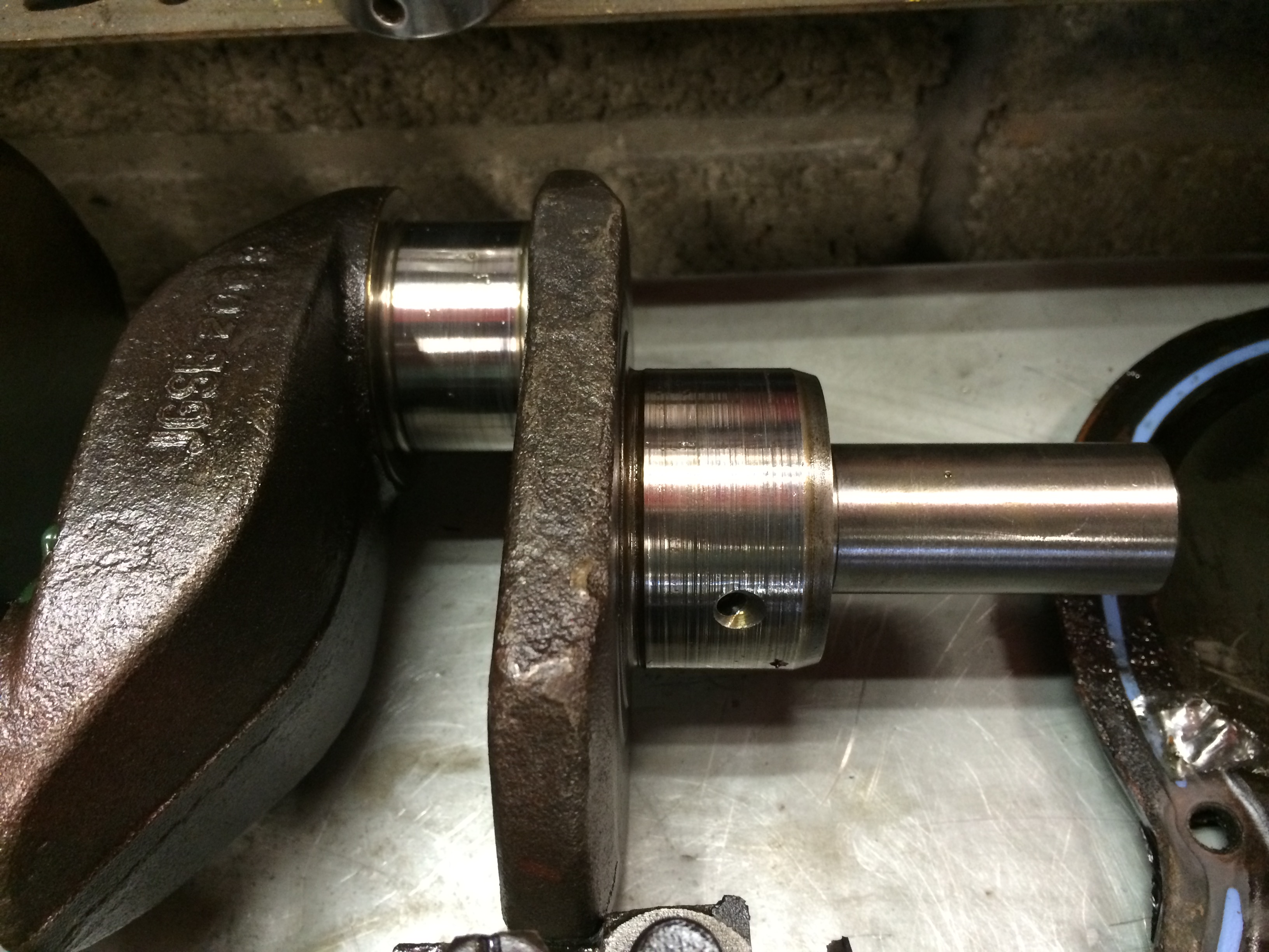 Aktuelles Schadensbild: Ölpumpe defekt, Kurbelwellen Lagerzapfen und Schalen angegriffen, Nockenwellenlagerbuchsen ebenfalls leicht angegriffen, Zylinderwände sind tadellos (Gott sei Dank), werden neu gehont, Kolbenringe erneuert. Steuerkettenspanner, nebst Kette und Ritzel werden erneuert. Alle Lagerungen (Pleuel, Nockenwelle,) werden erneuert, und eine Austausch- Kurbelwelle mit größeren Lagerschalen werden verbaut. Die Ventile werden nur gereinigt, da einwandfrei, und neu eingeschliffen. Schaftdichtungen natürlich erneuert.
