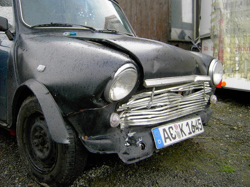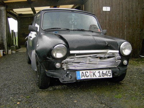 hätte mir einen besseren Anlass gewünscht um meinen ersten Beitrag in diesem Forum zu veröffentlichen.Hatte heute morgen einen Auffahrunfall auf der Autobahn A4 kur z nach der Anschlussstelle Richtung Alsdorf .Da mein Vordermann aufgrund eines Stauendes eine Vollbremsung machte ,hatte wohl gepennt musste ich ebenfalls bremsen ist mir aber nicht so gut gelungen.Hatte mit meinem kleinen welcher zur Zeit auf 145er Winterreifen unterwegs ist keine Chance und bin ihm draufgekracht ,blöderweise war zwei Autos hinter uns die Polizei so dass die Schuldfrage schnell geklärt war.Na ja nach Behördenkram ,abschleppen und so weiter steht mein Mini nun an unserer Garage in Aachen Eilendorf.Mir ist zum Glück nichts passiert ,was wohl auch zum Teil an meinen König Sitzen liegt welche über eine ausreichend hohe und stabile Kopfstütze verfügen.Na ja Prellung in beiden Knien von der Lenksäule.Hatte die gesamte Front im letzten Frühjahr komplett geschweisst d.h. Frontschürze und linken Kotflügel getauscht ,Stehbleche erneuert ,Lochfraß um Frischluftdüsen zugebraten, Innenecke unter dem Scheibenrahmen neu eingeschweisst,Motorhaube auf schnellverschllüsse umgebaut und Rahmen vorne festgelegt ,alles schön konserviert und neu lackiert.