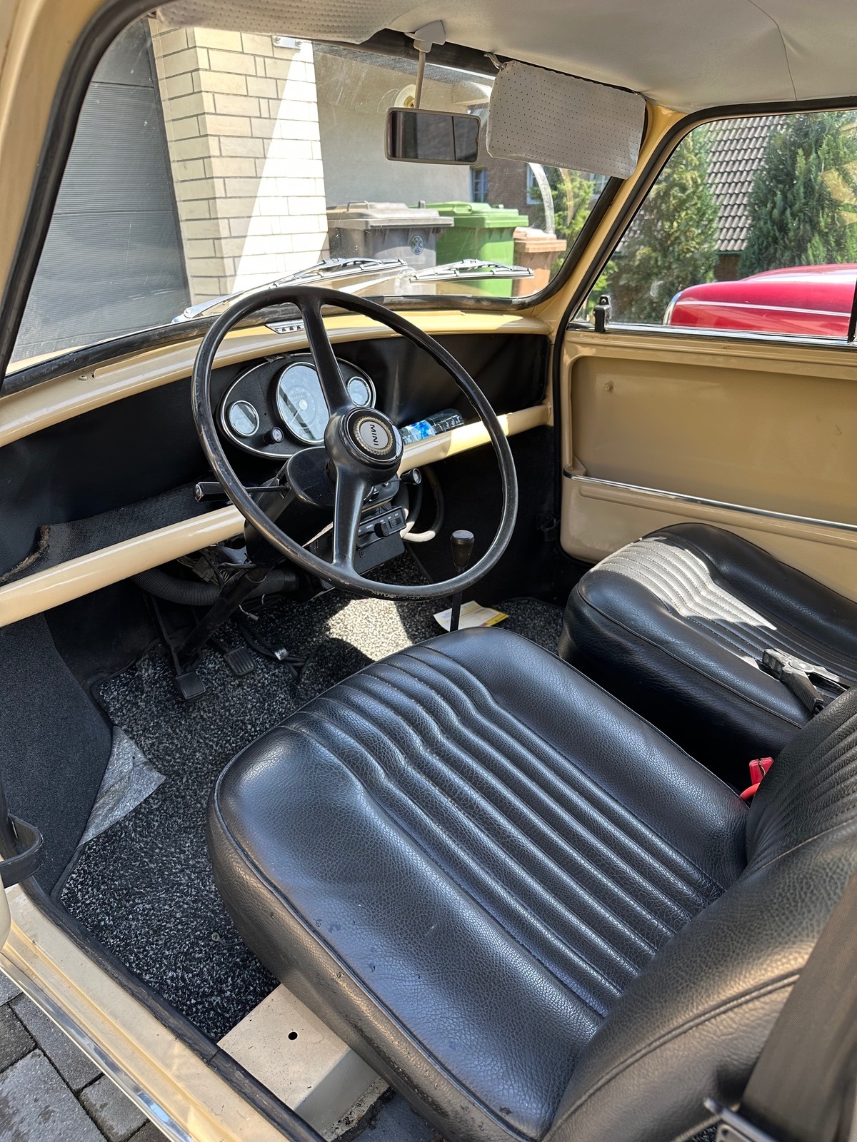 wir würden uns von unseren Van BJ76 mit H Kennzeichen trennen. Derzeit ohne TÜV, kann aber evtl. noch gemacht werden. Ein paar Baustellen sind zwar noch offen, aber TÜV relevant ist eigentlich nur noch eine Achsmanschette, die getauscht werden muss. Es handelt sich um einen extrem seltenen Mini, der in Portugal gefahren ist und daher extrem wenig Rost hat. Es gibt keine Durchrostungen und er stand bei uns immer trocken! Die Besonderheiten für diesen Van sind, dass er mit Rücksitzbank gebaut wurde und hinten eigentlich sogar Kurbelfenster hat, die leider durch den Vorbesitzer festgestellt wurden. Nachgerüstet wurde Heizung und Warnblinker. 1000er Motor mit 49PS. Es ist kein Notverkauf!