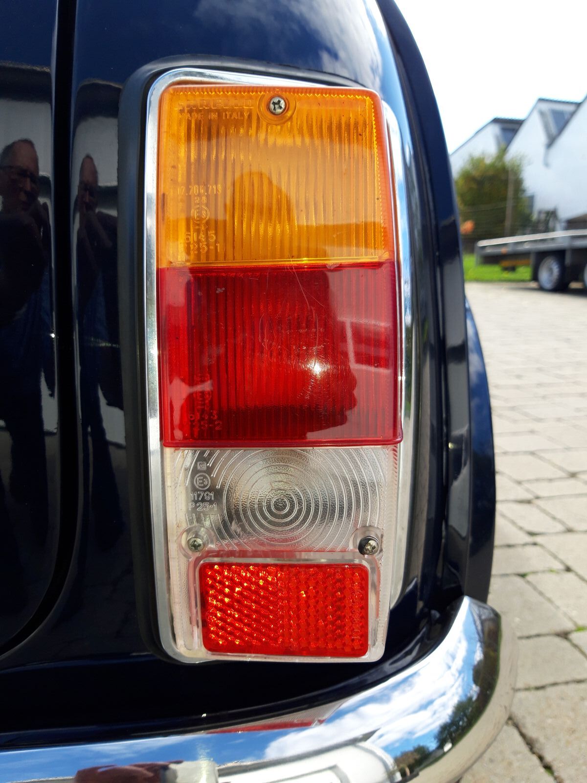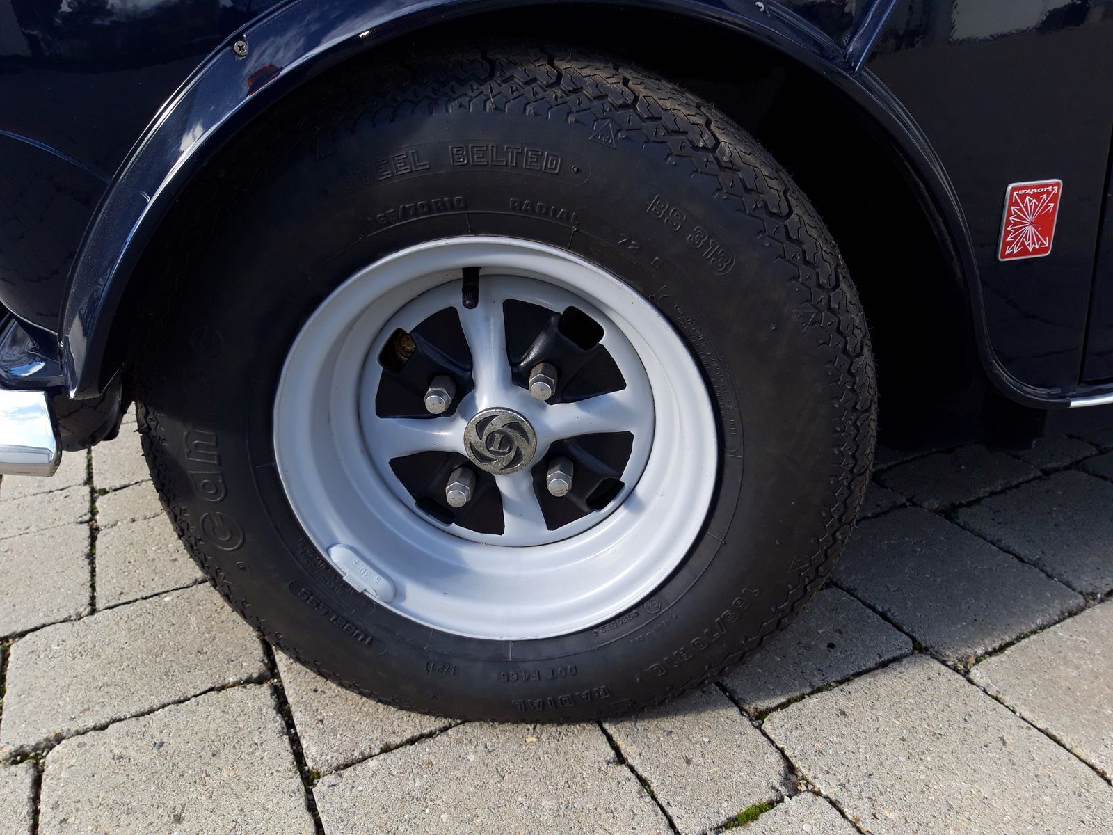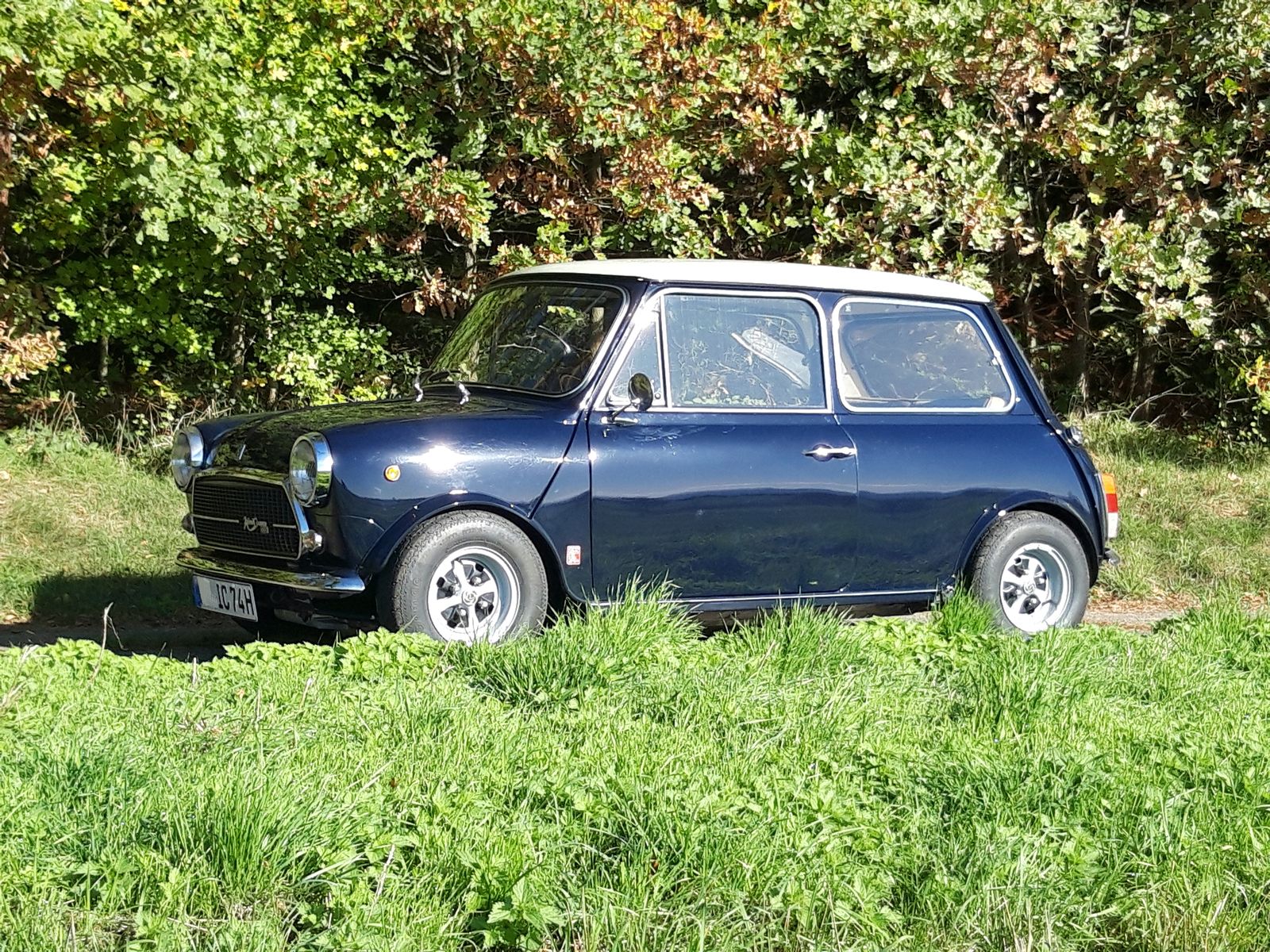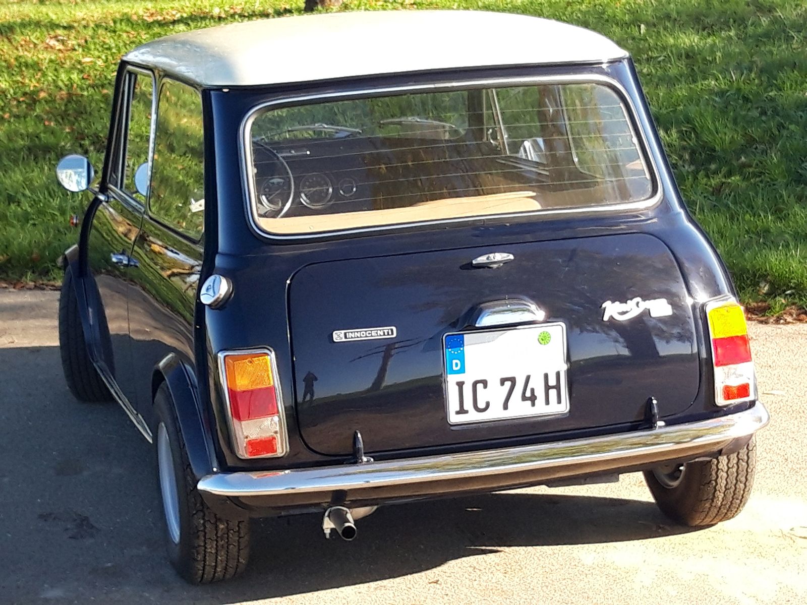 In Ehren ergraut, aber fit und gesund! So könnte man dieses Exemplar in Bleu Scuro und Bianco Avorio knapp beschreiben. Wer „ergraut“ mit „verschlissen und dreckig“ verwechselt, macht sich ein falsches Bild von diesem Cooper. Er wurde mit Respekt vor dem Alter (Bj. 1974) und seiner Herkunft aus dem Hause Innocenti gewissenhaft restauriert (Fotodokumentation), aber nicht zur Concours Reife, sondern mit der Absicht, möglichst viel Originales zu erhalten oder es durch originale Teile zu ersetzen. Das geht soweit, dass originale Reparaturbleche verwendet worden sind, sodass keine zusätzlichen Schweißnähte zu sehen sind. Selbstverständlich kommen Verschleißteile auch von den ursprünglichen Lieferanten von Innocenti, wie das nur schwer zu beschaffende linke Rücklicht oder die Scheinwerferringe. Das Außenbild wird durch die typischen Embleme und die Radverbreiterungen, die dezent die sportliche Note betonen, und die seltenen Firsat Felgen in 5 X 10, die als Option ab Werk zu diesem Cooper gehörten, vervollständigt.