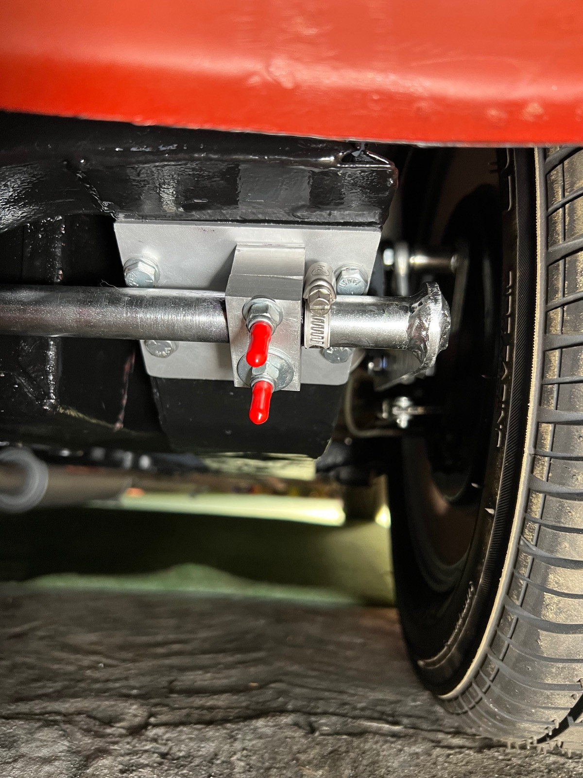 Jetzt sitzt der Stabi aber echt eng drunter, es ist kaum Platz beim Handbremsseil🙄.