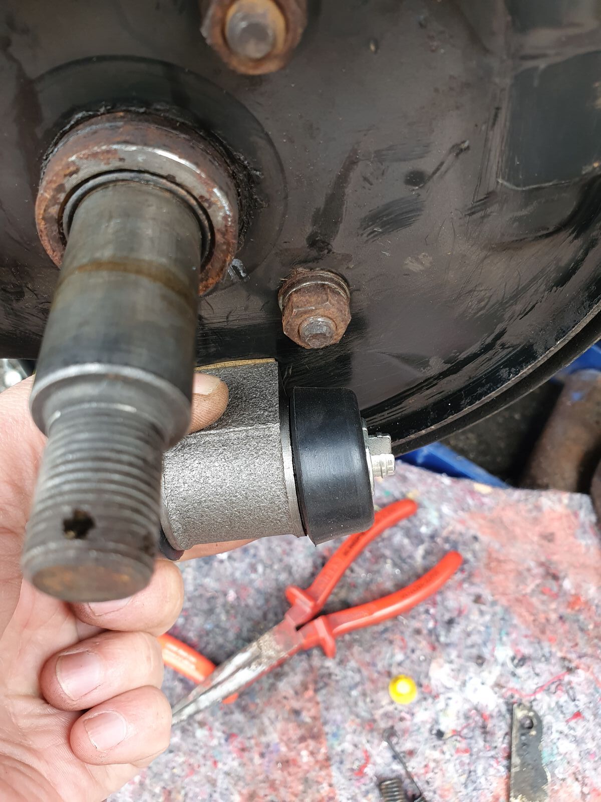Aber komplett fest bekomme ich den Zylinder nicht? Wird der von den Bremsbacken in Position gehalten?