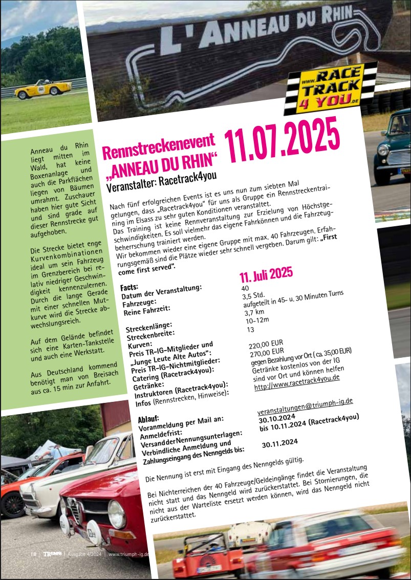 Die Triumph-IG-Südwest, veranstaltet wieder ihren Trackday auf dem Anneau du Rhin.