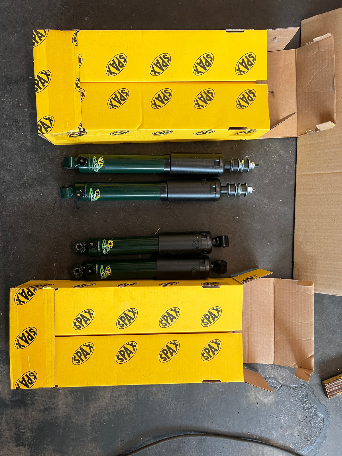 Als letzt Änderung habe ich dem Mini noch einen Satz einstellbare Spax-Dämpfer verpasst. Primär weil die Gas-A-Just für den tiefergelegten Mini etwas zu weich und zu lange waren, aber auch weil die jetzt an meinen SPI wandern, dessen rote Konis langsam aufgeben. Sobald das Fahrwerk fürs lackieren wieder raus ist, tausche ich die Adjusta-Rides gegen originale HiLos aus, die wirken wesentlich stabiler.