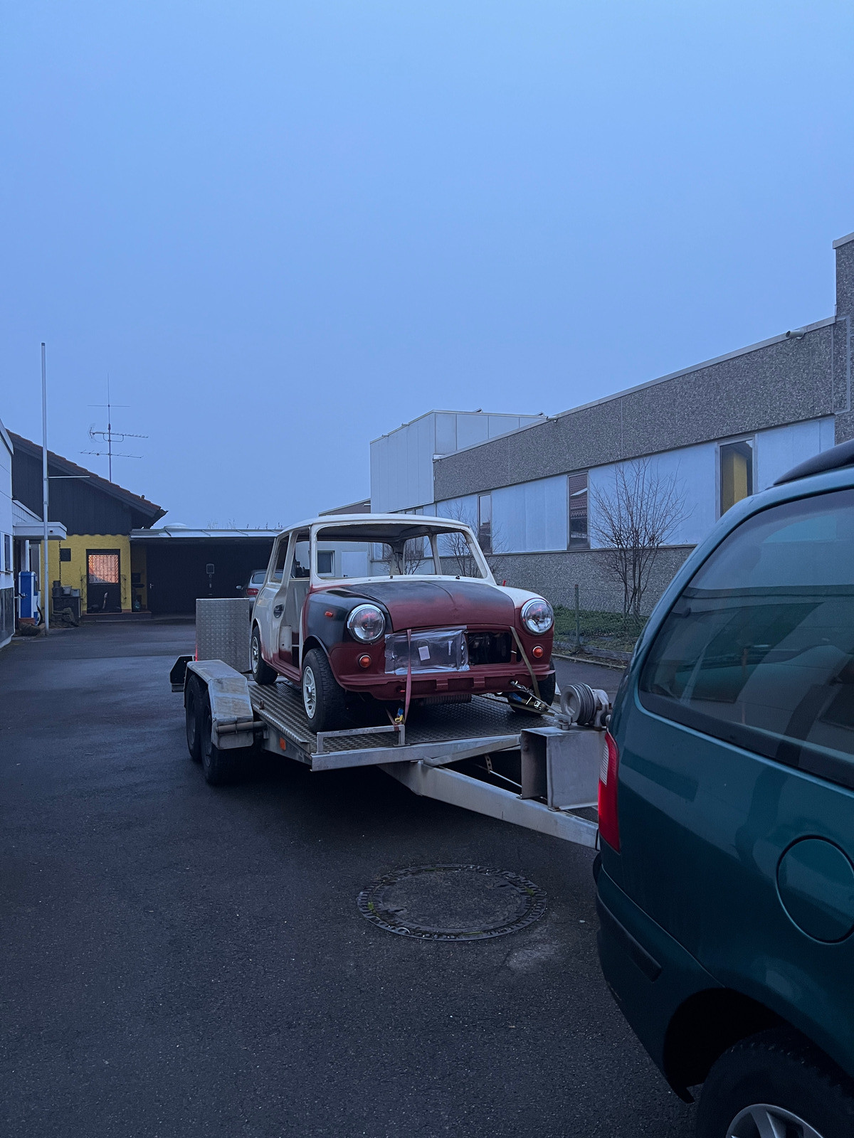 Zweieinhalb Stunden später rollten wir mit dem Mini im Schlepptau bei HEIGO auf den Hof.