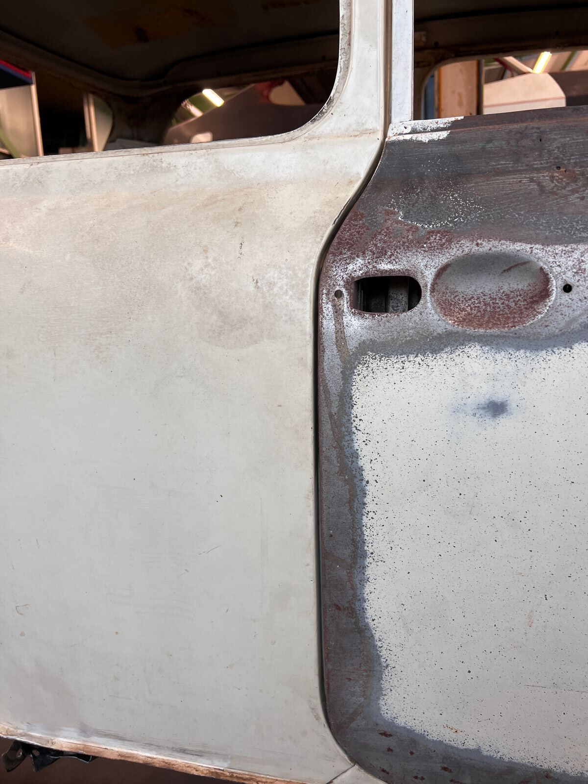 Und damit ist es für diese Woche auch wieder geschafft, aktuell zerleg ich noch meine Heizung, ansonsten heißt es weiter auf den Käfig und den Kotflügel warten. Die zweite Tür braucht noch etwas mehr Arbeit, hier hat der Vorbesitzer einen ca. 10cm großen Streifen des Türrahmens unten einfach abgeflext, das passende Reperaturblech dafür hab ich bereits vor Monaten bestellt.