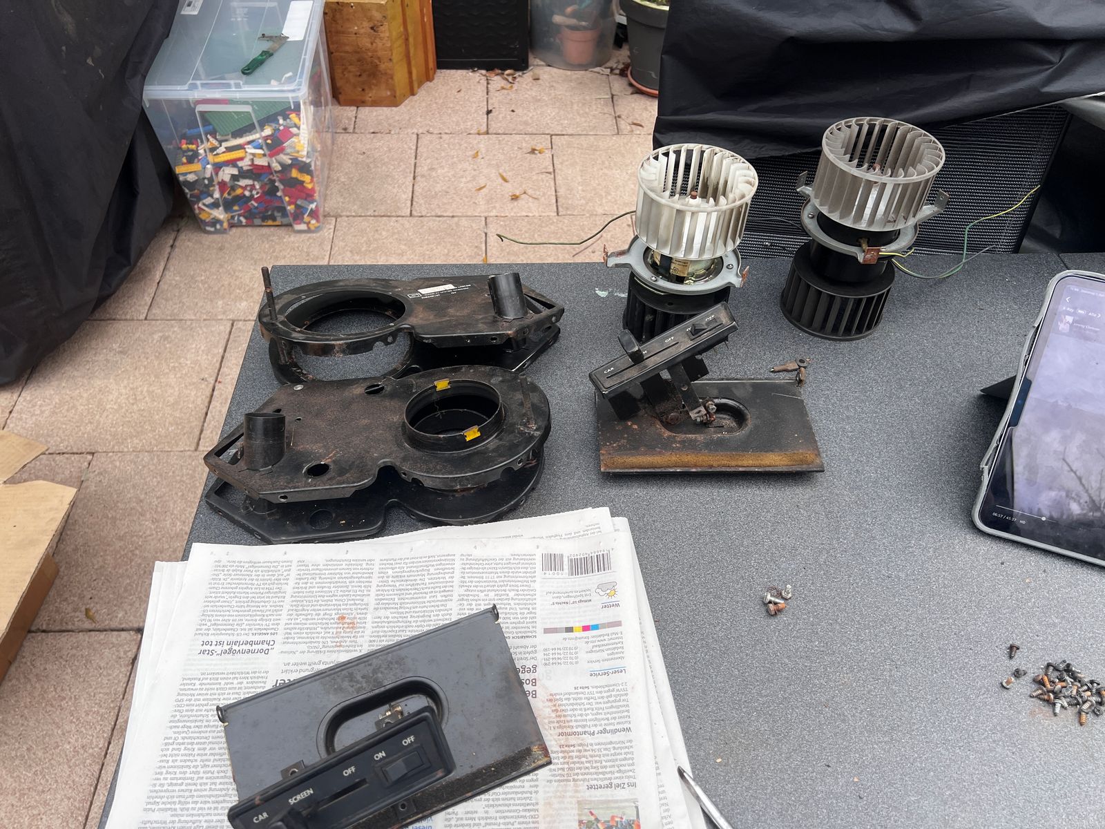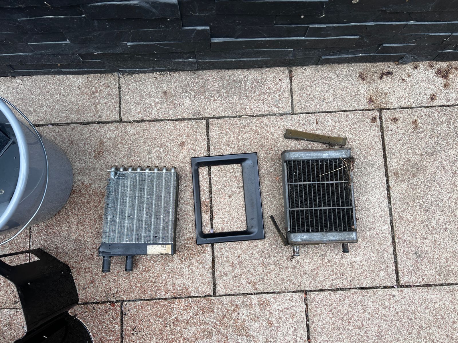 Jetzt aber zum Wochenende: Ganz zu Beginn der Restauration habe ich zwei „Haufen“ angelegt – einen mit Teilen, die ich nicht mehr benutzen möchte, und einen mit Teilen, die noch restauriert werden müssen. Der letztere wurde Stück für Stück kleiner. Letzte Woche lagen noch genau zwei Teile dort: der Tank und eine Kiste mit zwei Heizungen. Da der Tank nur einen neuen Tankgeber und eine gründliche Reinigung benötigt, ging es an die Heizung(en).