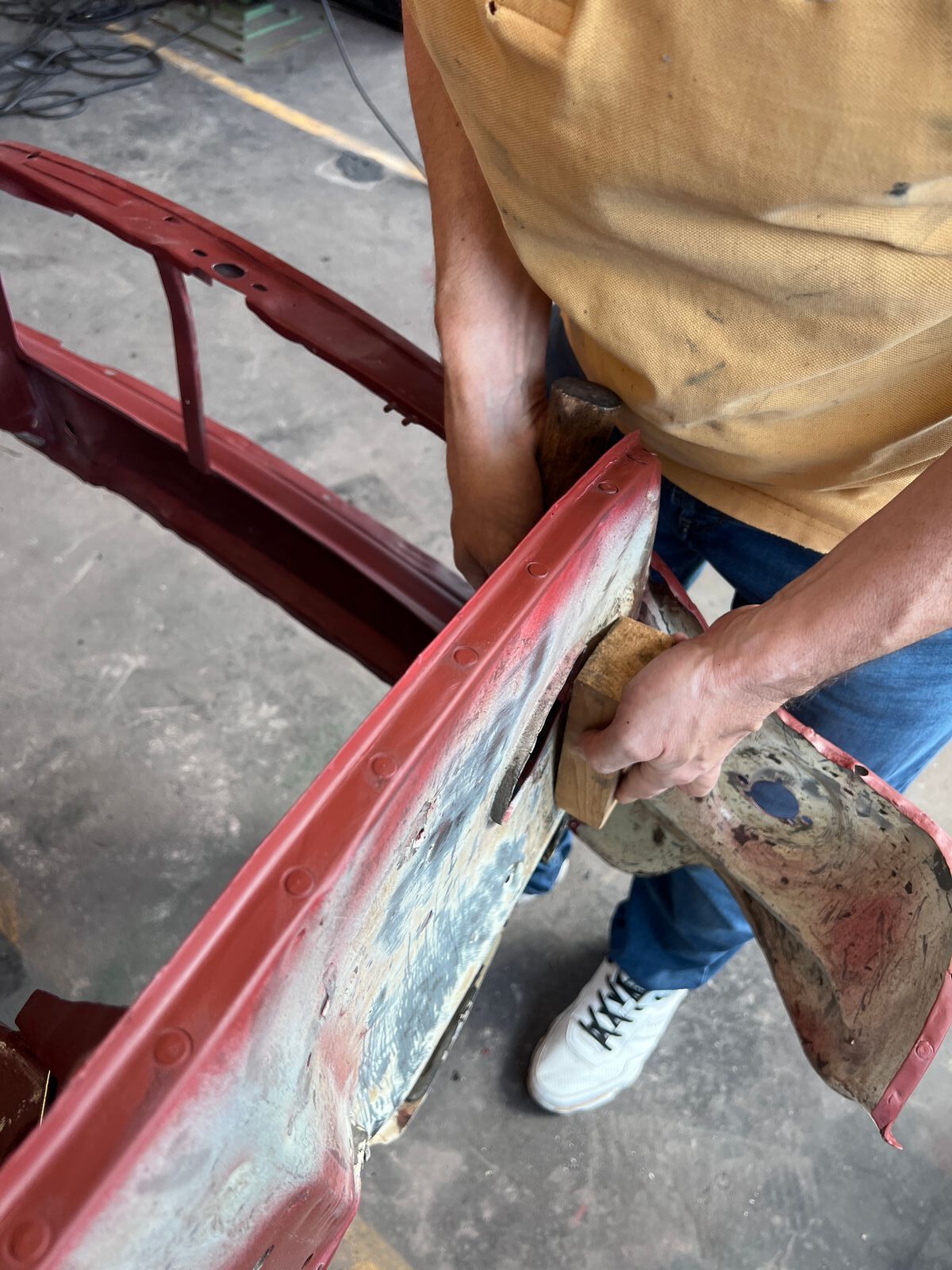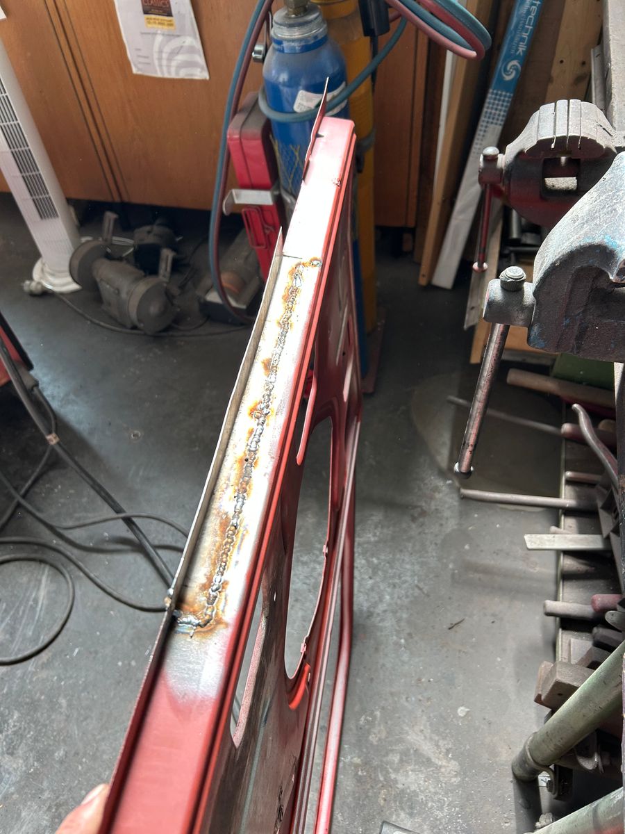 Zuerst habe ich überlegt, die Stelle normal zu schweißen. Doch das ist nahezu unmöglich, ohne die Kontur des Falzes zu verändern. Also war mein nächster Gedanke, das dünne Blech herauszutrennen und neu einzusetzen. Allerdings wäre es extrem schwierig, den Falz auf der anderen Seite wieder originalgetreu herzustellen – abgesehen davon ist es die denkbar schlechteste Stelle, um von innen mit einem Schweißgerät zu arbeiten.
