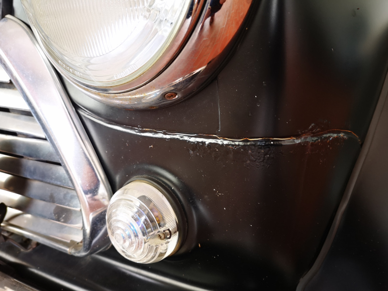 Nach dem Entrosten (wie oben) die Naht von außen komplett Punkt für Punkt verschweißen, glatt schleifen und mit einem Dremel die "Sicke" nachbilden... Lackieren...
