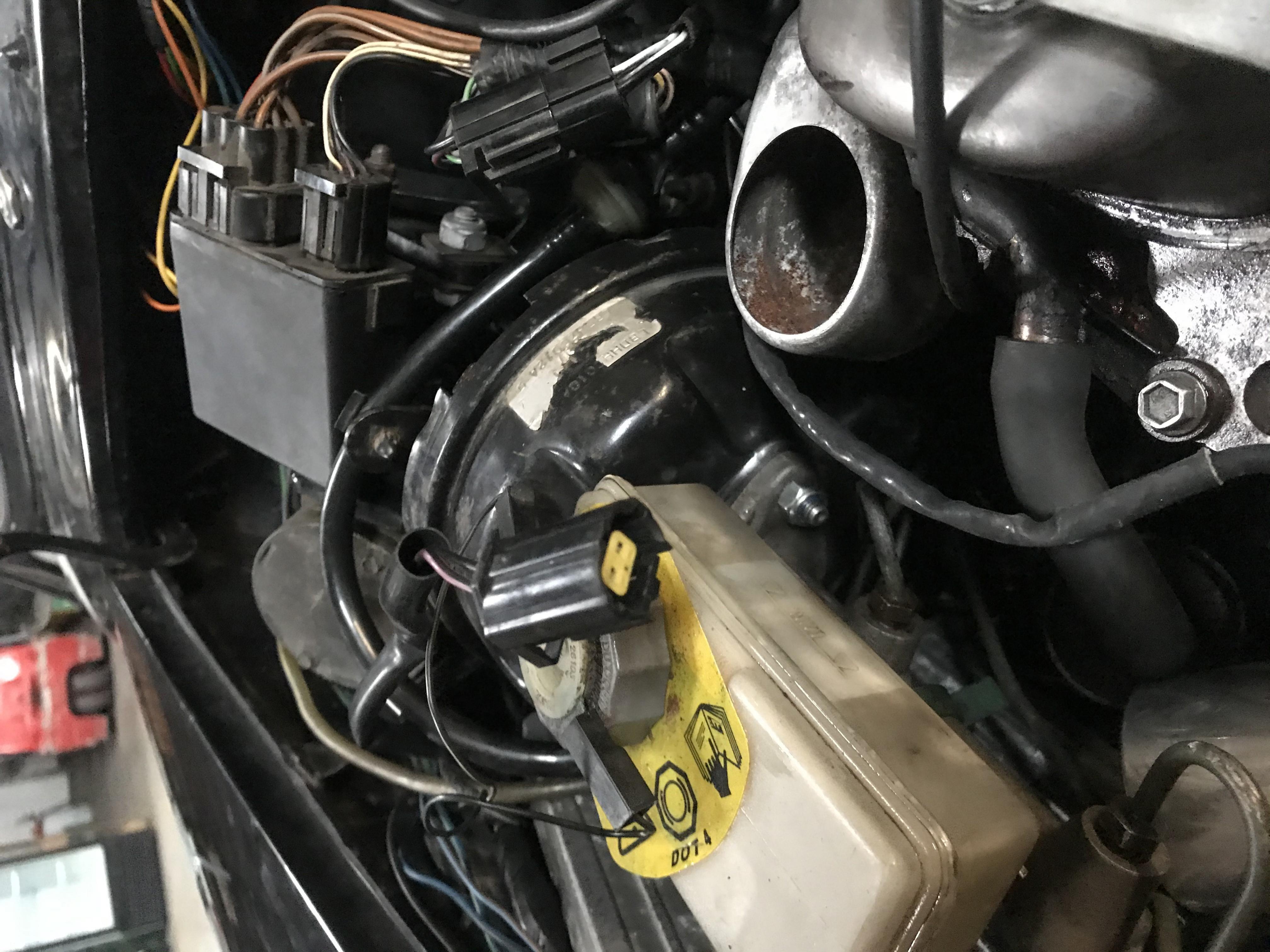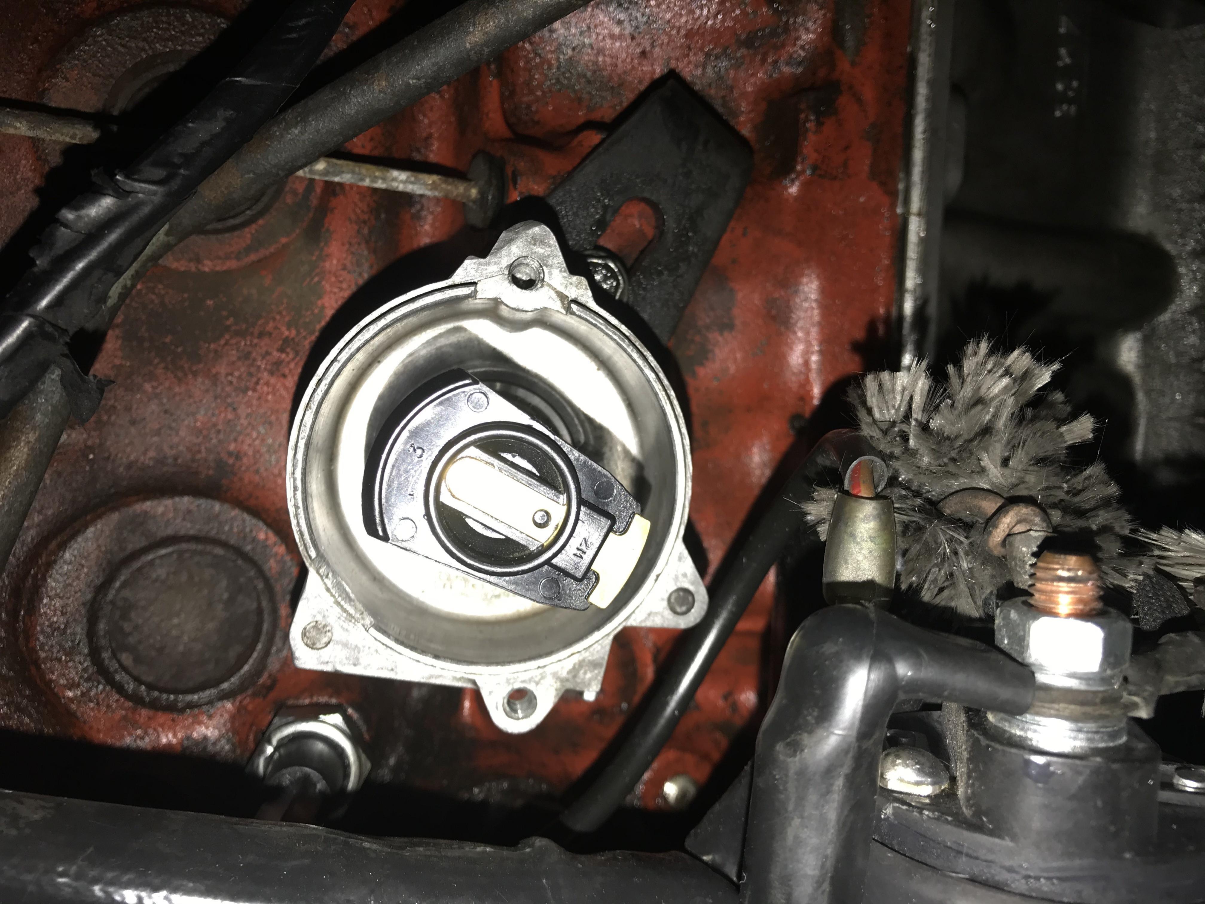 Kann mir einer sagen wie die Stellung stehen muss für den Zündverteiler ? Und wofür der Stecker ist er ist links beim Bremskraftverstärker? Versuche Bilder sein zu stellen