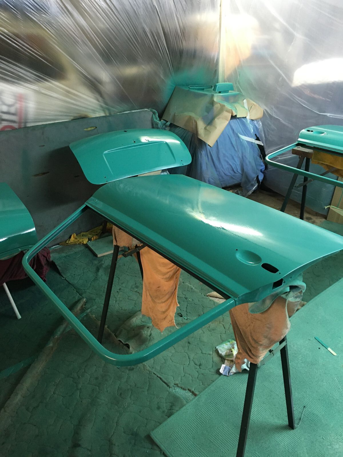 und das Dach von innen, ist blöd zu lackieren wenn die Karosse wieder auf den Rädern steht.