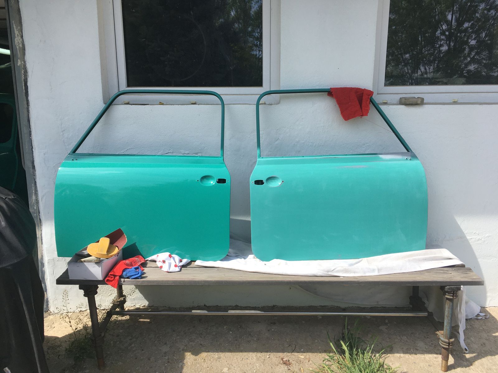 Für mich das erste Mal lackieren mit der Pistole. Na ja, paar Nasen sind gelaufen, ein paar stumpfe Stellen und viel Orangenhaut gibt es. Aber für die allererste Garagenlackierung bin ich ganz zufrieden. Lackierer ist nicht umsonst ein Lehrberuf. Und die Bedingungen waren auch nicht ideal (zu kalt). Türen und Motorhaube darf ich nochmal anschleifen, da war der Lack zu mies und ich hatte Pinholes. Warum auch immer. Nach dem zweiten Versuch sieht es schon ganz annehmbar aus