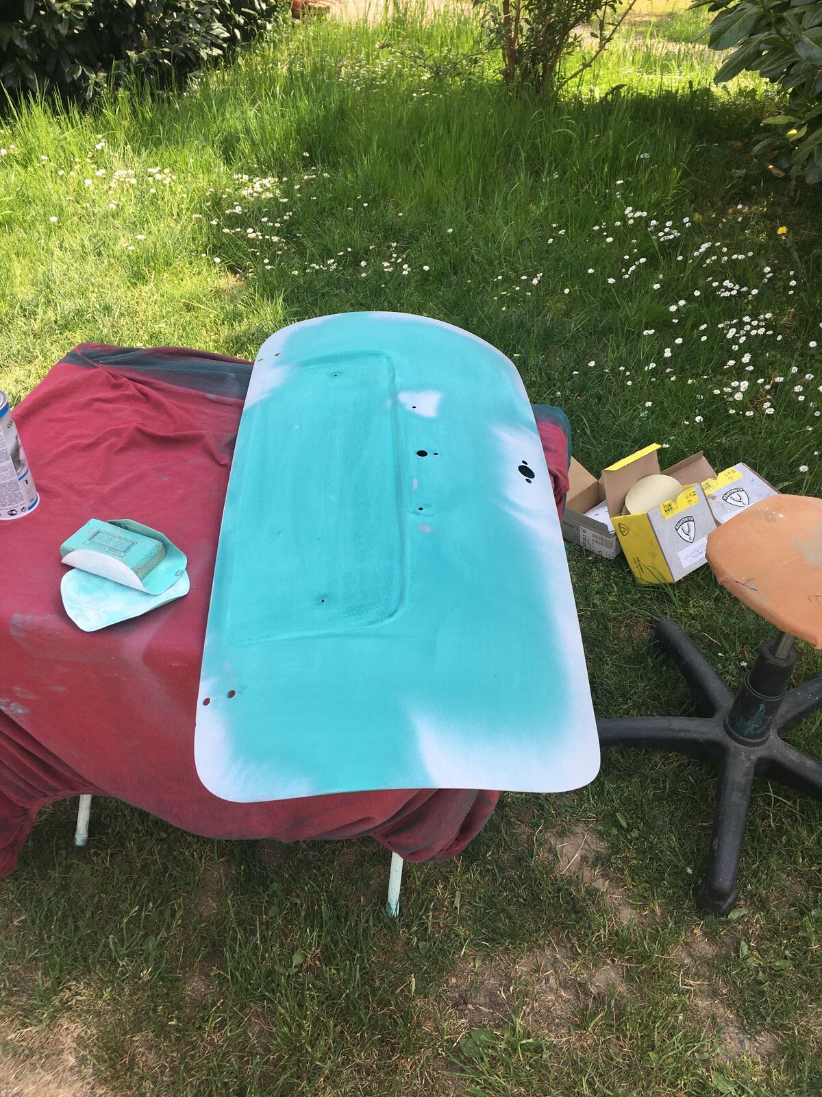 Danach passierte Temperatur bedingt wochenlang nichts, das Blech war zum Lackieren einfach nicht warm genug. ![]()