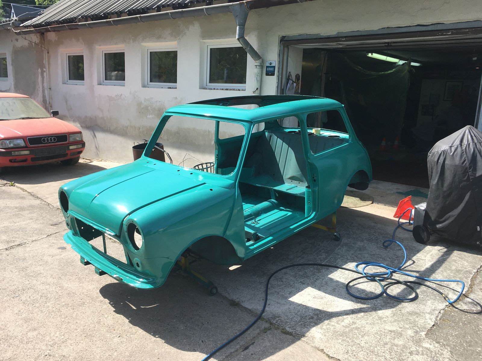 Wenn alles fluppt wird die Karosse nächste Woche zum ersten mal auf eigenen Rädern rollen.