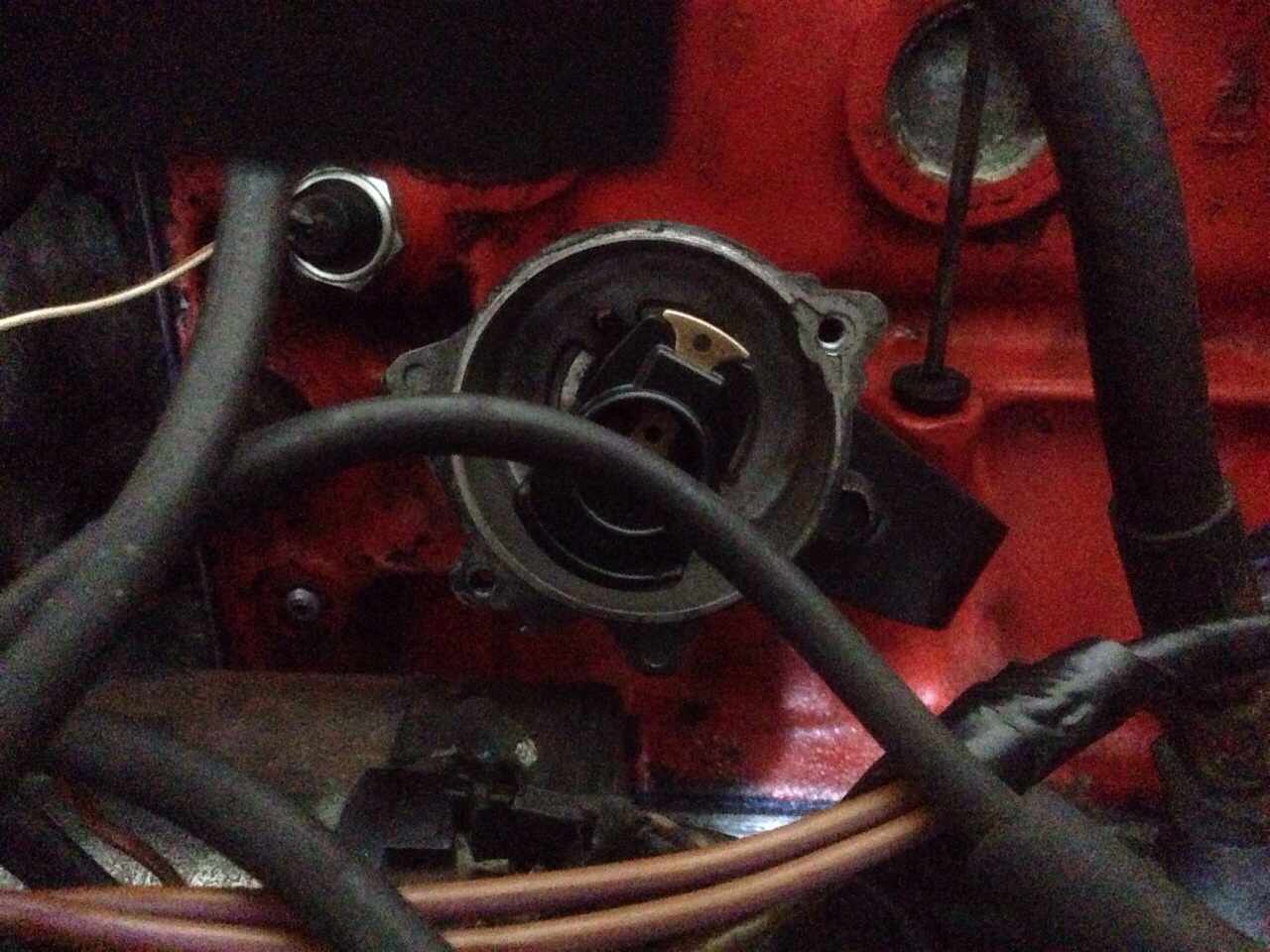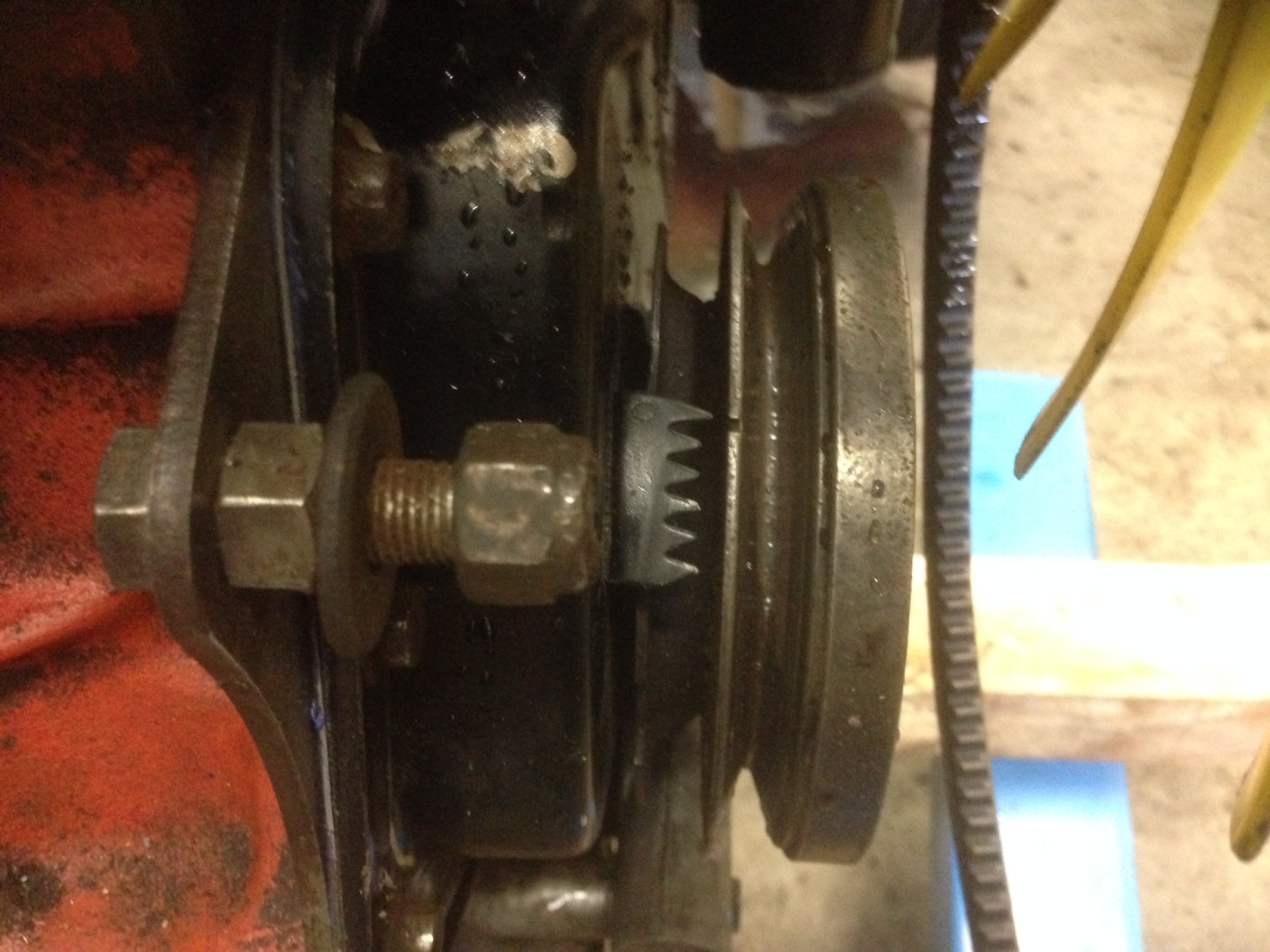 So, der Motor läuft wie eine Biene. Die Mitnehmerscheibe war um 120 Grad verdreht montiert da die 2 Passstifte nicht vorhanden sind auf der Schwungscheibe.