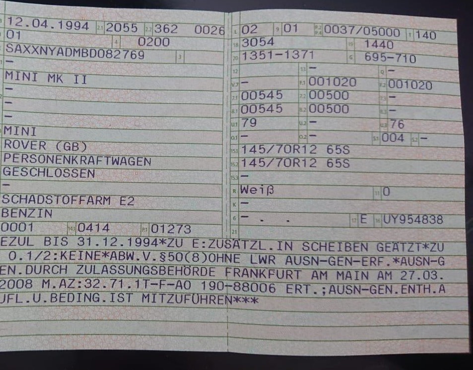 Im Vorstellungs- Thread konnte mir die Community schon deutlich bei der Identifizierung helfen. Es handelt sich um einen British open der als Export Fahrzeug nach Italien kam und dann zur Erstzulassung nach DE importiert wurde. Das erklärt auch, dass das Fahrzeug mit einem 1300er Vergasermotor ausgerüstet ist.