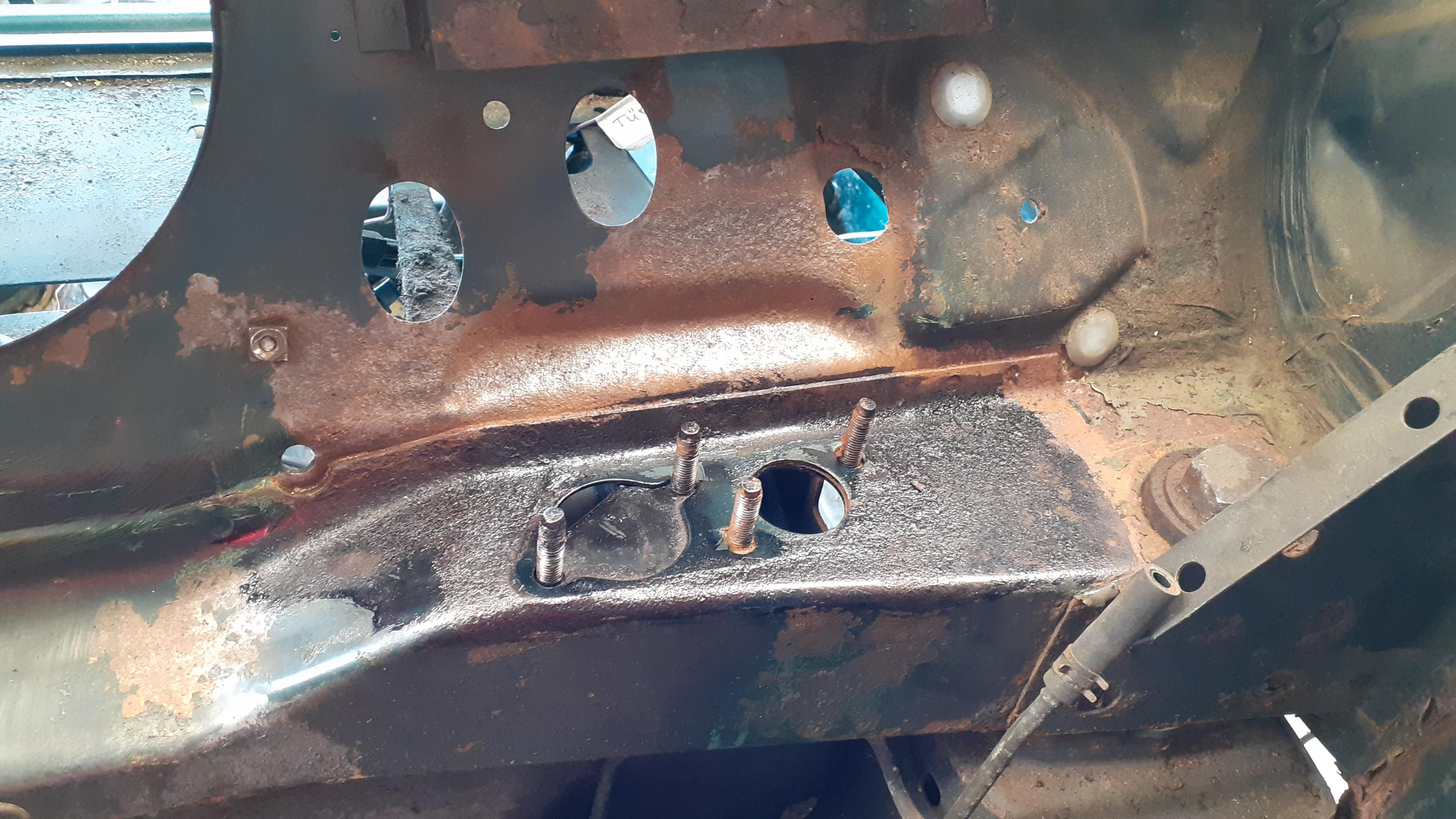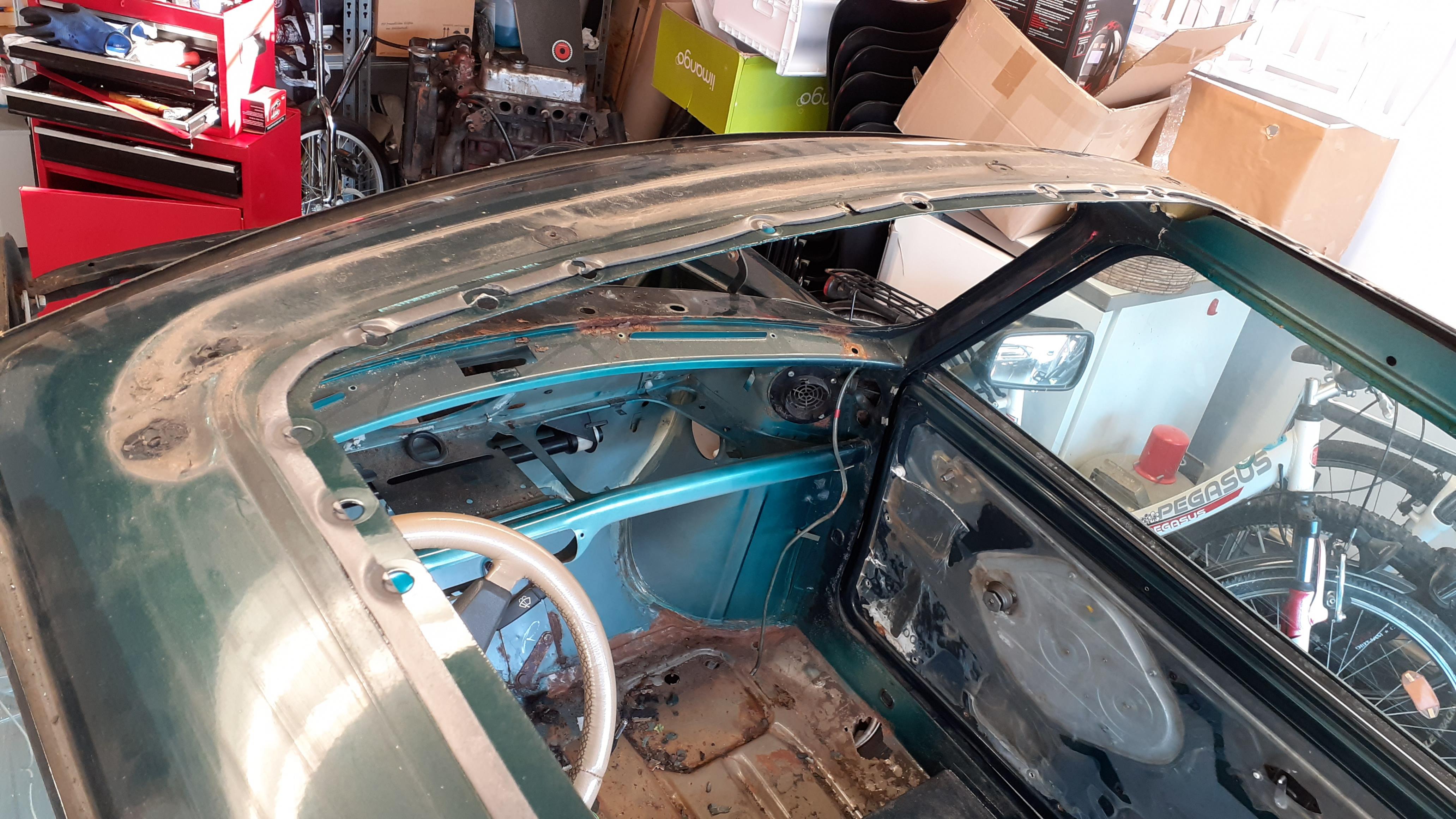 Aktuell bin ich erstmal am Zerlegen. Bisher hat mich das ca. 30 h Arbeit gekostet. Der Innenraum ist weitgehend leer, der Motorraum auch und der Kabelbaum ist auch schon draussen. Schrauben haben sich glücklicherweise fast alle lösen lassen. Bisher musste ich nur zwei Schrauben ausbohren.