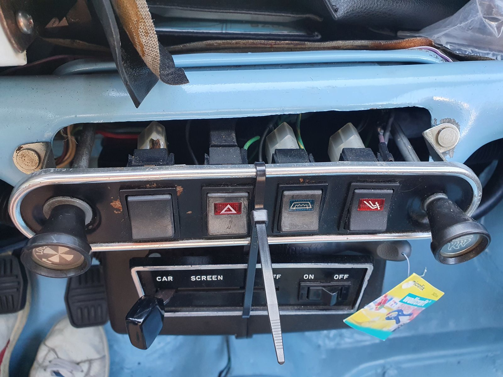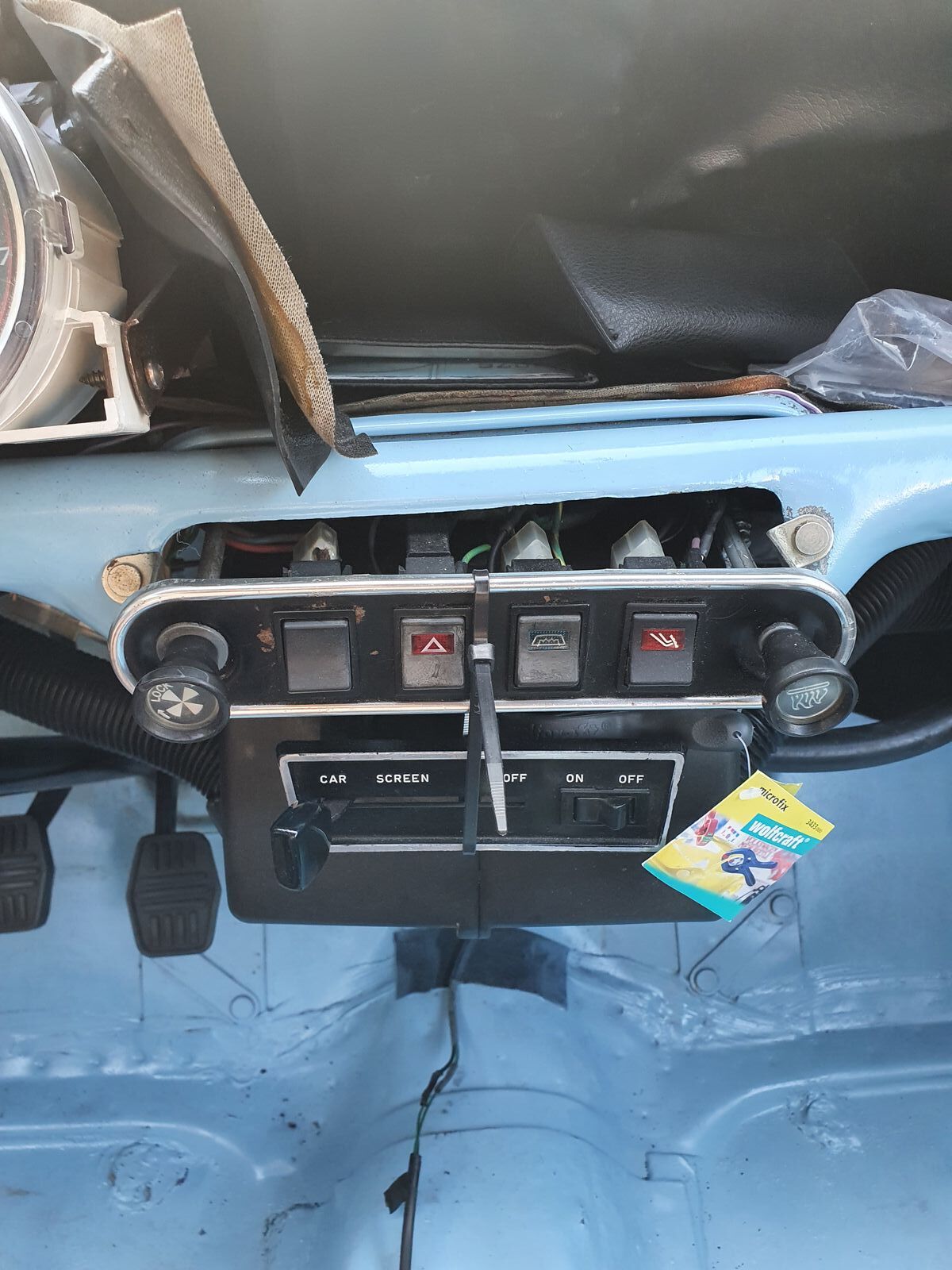 Ich werde mir eine Schalterleiste bei DSN Classic Retro Motorsport bestellen. Dazu habe ich ein paar Fragen. Ich will keinen Prallschutz montieren also passt die Schalterleiste zb. für Van Pick-Up ja. ( Siehe Foto ) In der Beschreibung steht Löcher sind für kleinere Kippschalter. ( Siehe Foto ). Was ist die Größe der kleineren Kippschalter und passen die dann auf die Anschlüsse meiner originalen Schalterleiste ( siehe Foto ) oder brauche ich einen Adapter? Würden die passen? ( Siehe Foto ) und habe ich noch was besonderes zu bedenken?