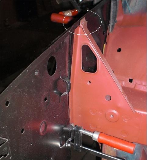 An dem Dreiecksblech der Domstrebe in Richtung Innenkotflügel ist bei mir noch ein Blech "aufgedoppelt"; bei dem bin ich mir aber nicht sicher ob das noch ein Teil vom alten Innenkotflügel ist, oder ob hier schon mal jemand einen Innenkotflügel "angepasst" hat.