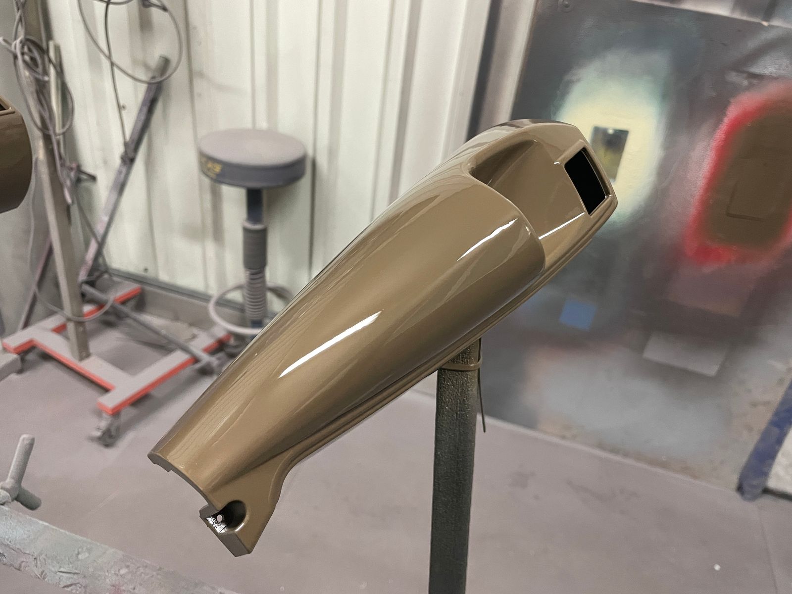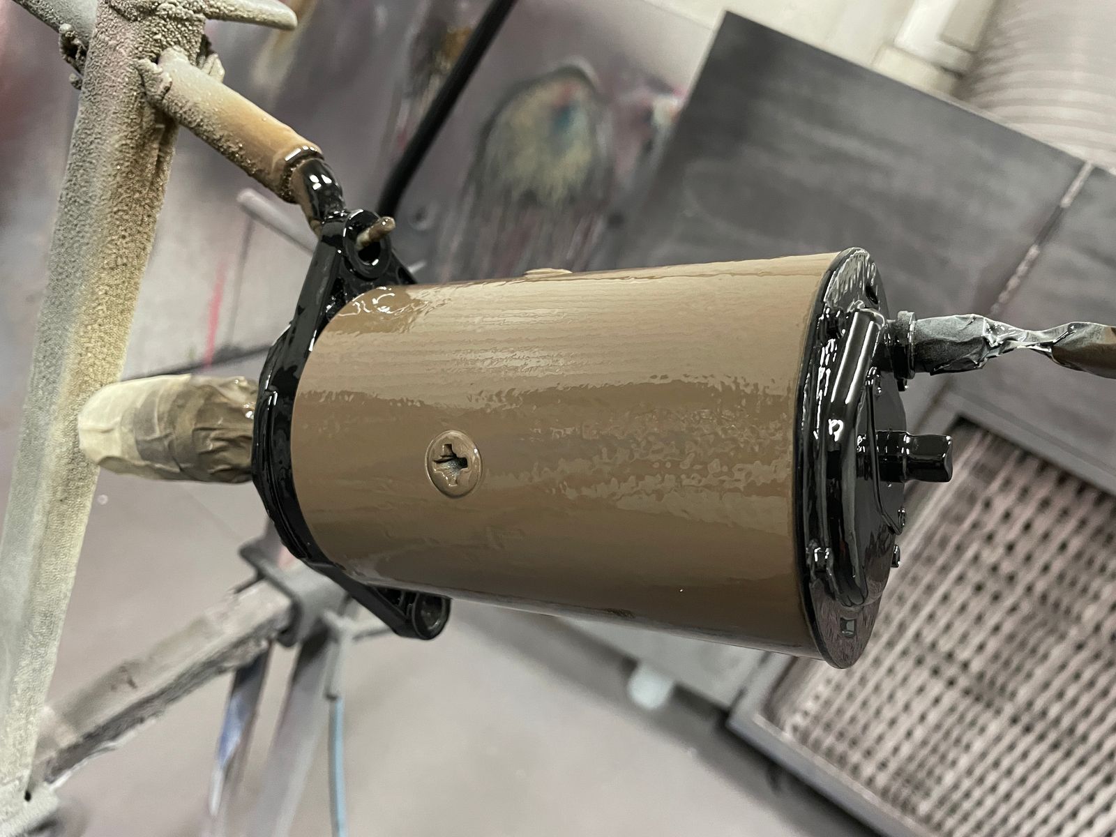 Karosserie, Rahmen und jede Menge Kleinteile sind mittlerweile beim Sandstrahler gelandet, da war Zeit zur Lackierung von diversen Neuteilen.