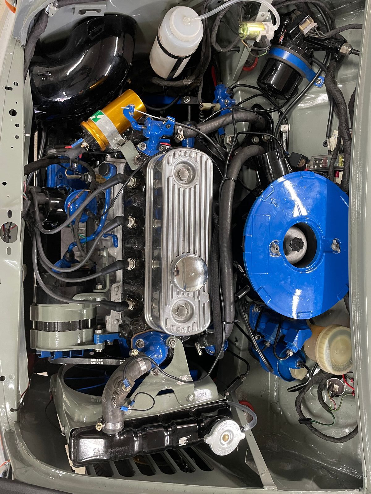 An der Spritzwand mittels einen Stoßdämpferhalter montiert läuft sie außen entlang zum Hilfsrahmen. Das kann doch nicht original gewesen sein?