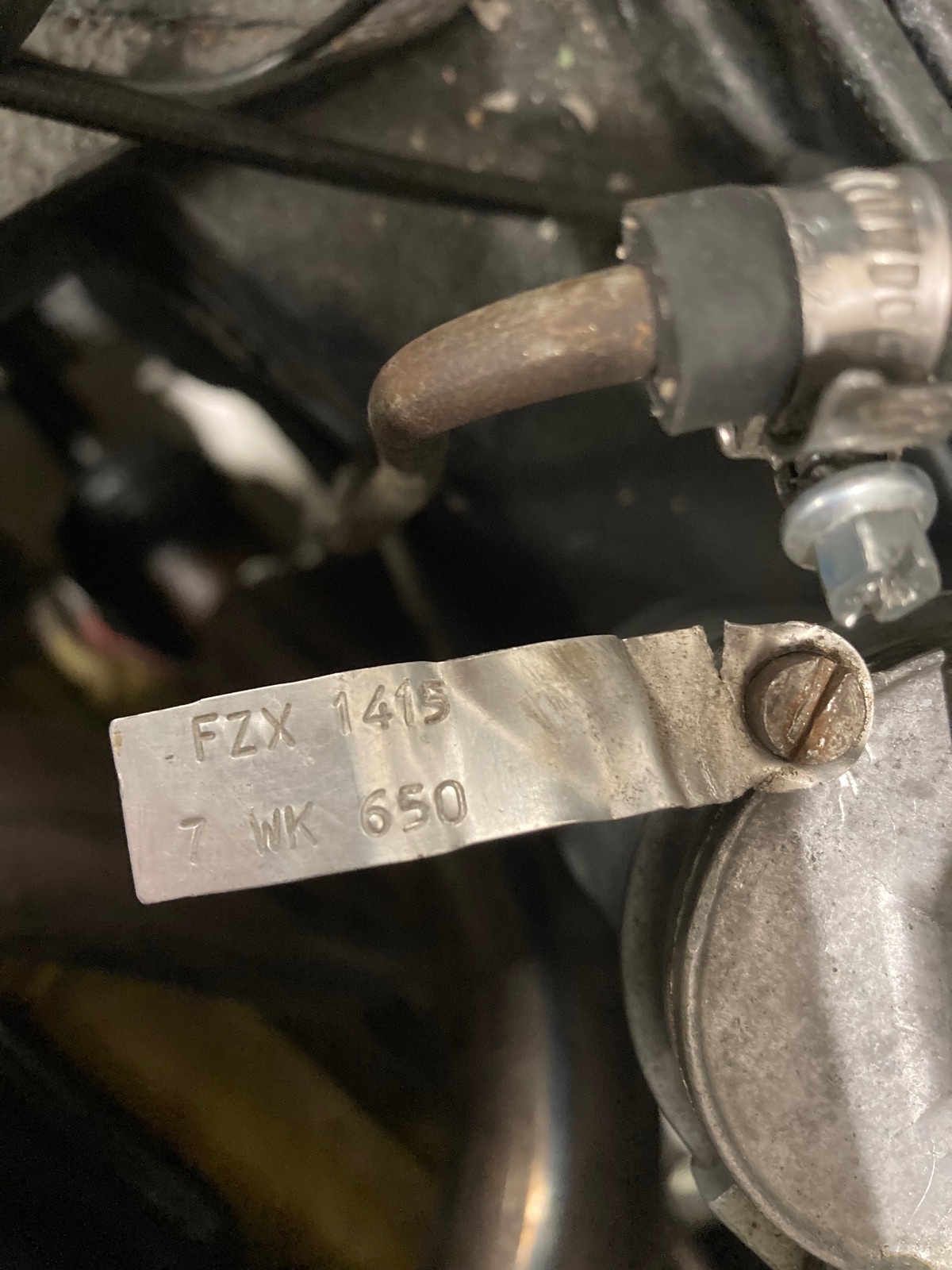 An Deinem Vergaser müsste, an der Schwimmerkammer, eine kleine Alublechplakette dran sein mit eingstanzter Codierung - z.B. FZX 1415.