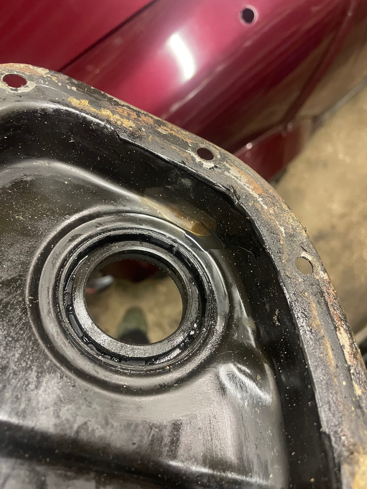 Bin grad dabei nen Steuerkettendeckel neu abzudichten und bin dabei auf diese Macke gestoßen… Die Scheibe welche den Simmering vor direktem Öl schützt hat keinerlei Macken oder ähnliches und scheint mir eigentlich das einzige zu sein was dort am Deckel hätte streifen können.