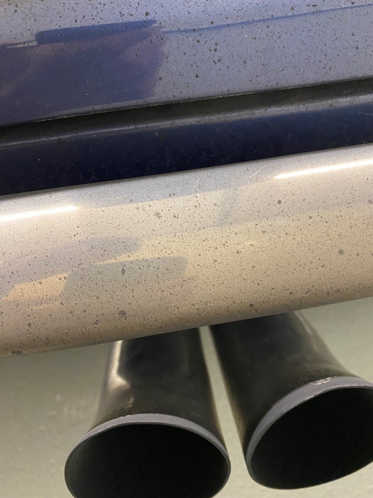 Nach dem Ölwechsel bin ich 200 km gefahren und musste schon sehr nach neuen Rußflecken suchen - es sind welche dazugekommen, aber wenige. Vermutlich wurde er früher nie gewaschen oder mit dem Öl vorher lief er anders.