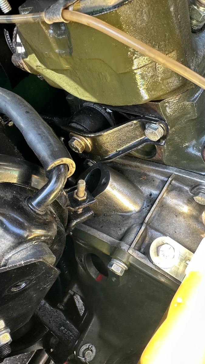 Nun hängt der Zylinder unten bekanntlich am Bremspedal und ist mit einem Bolzen und Splint gesichert.