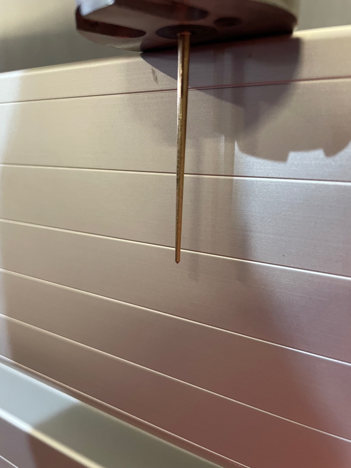 Nun ist eine eher spitzere Nadel verbaut. Ich halte es auch nicht für ausgeschlossen, die Nadeln irgendwann mal vertauscht zu haben. 🙈