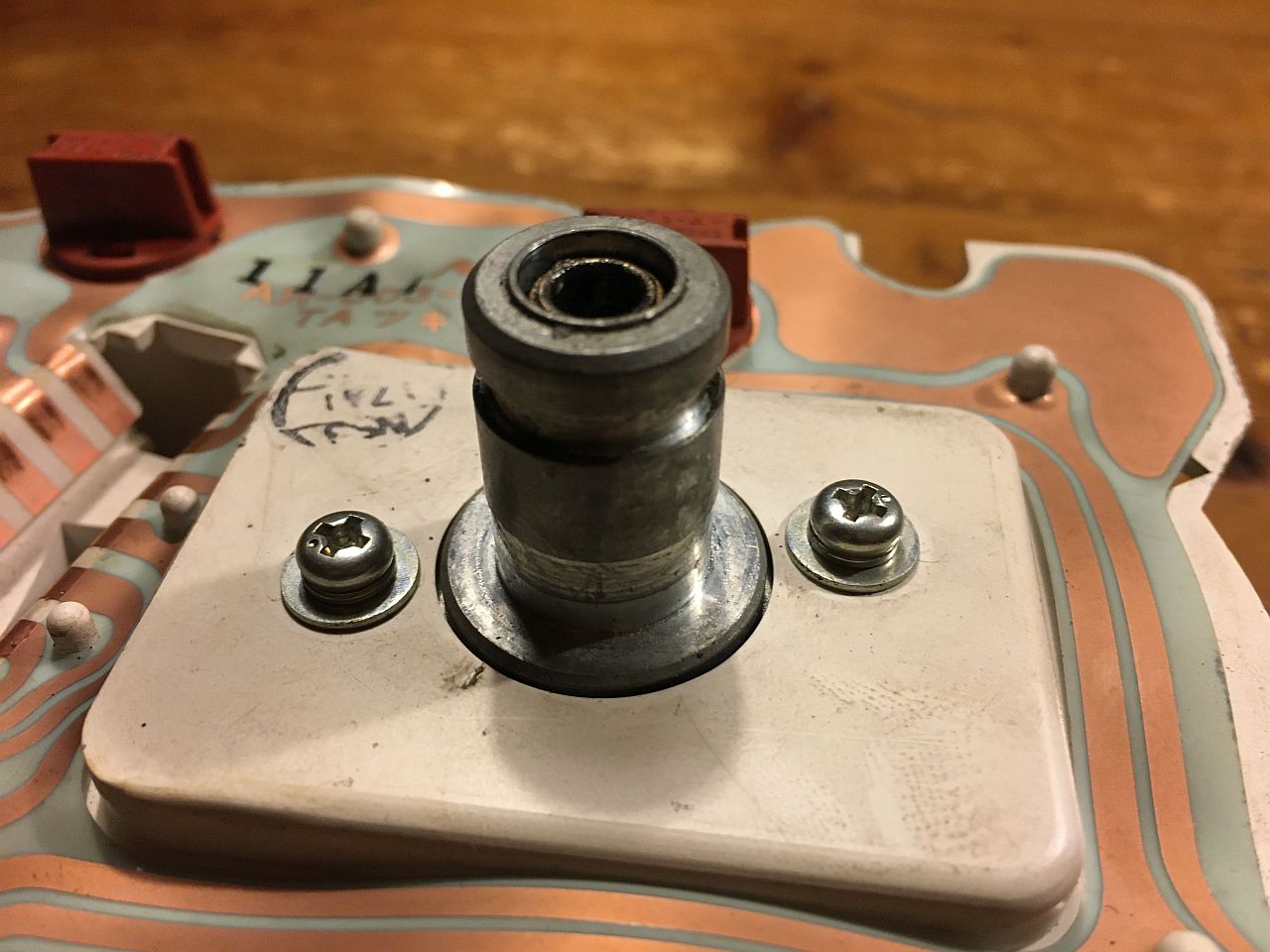 An meinem Auto wurde das originale Armaturenbrett durch ein Wurzelholzbrett mit nach links hinters Lenkrad versetztem Nippon Seiki Tacho ausgetauscht. Dieser hat einen Steckanschluss (Adapter). Der frühere Tacho hatte aber einen Schraubanschluss. Und da der Vorbesitzer anscheinend die Hülle am Getriebe nicht los bekam, hat er einfach die Überwurfmutter der alten Hülle mit Isolierband (!!) am Tachoeingang festgeklebt.