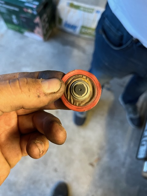 Habe mir dann das Membran angeschaut und es sieht „durch“ aus anbei paar Bilder. Als würde er dann kein richtigen Druck im „Düsenkopf“ aufbauen?!