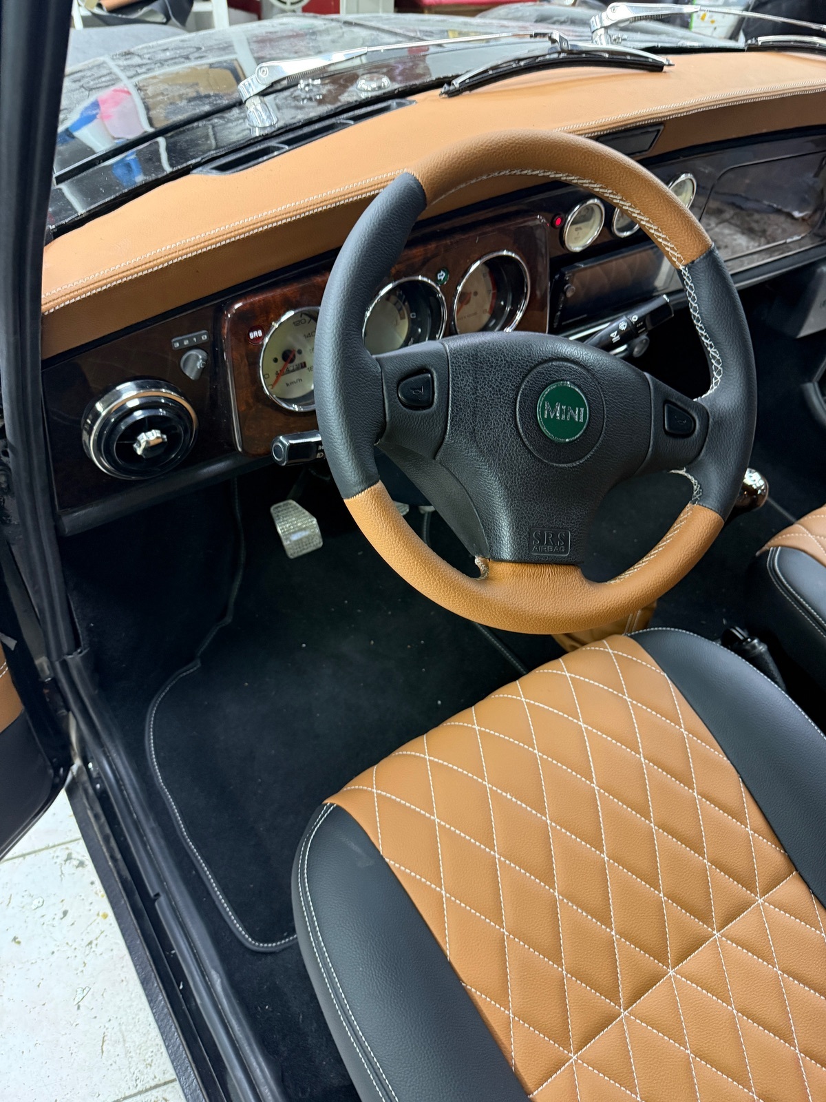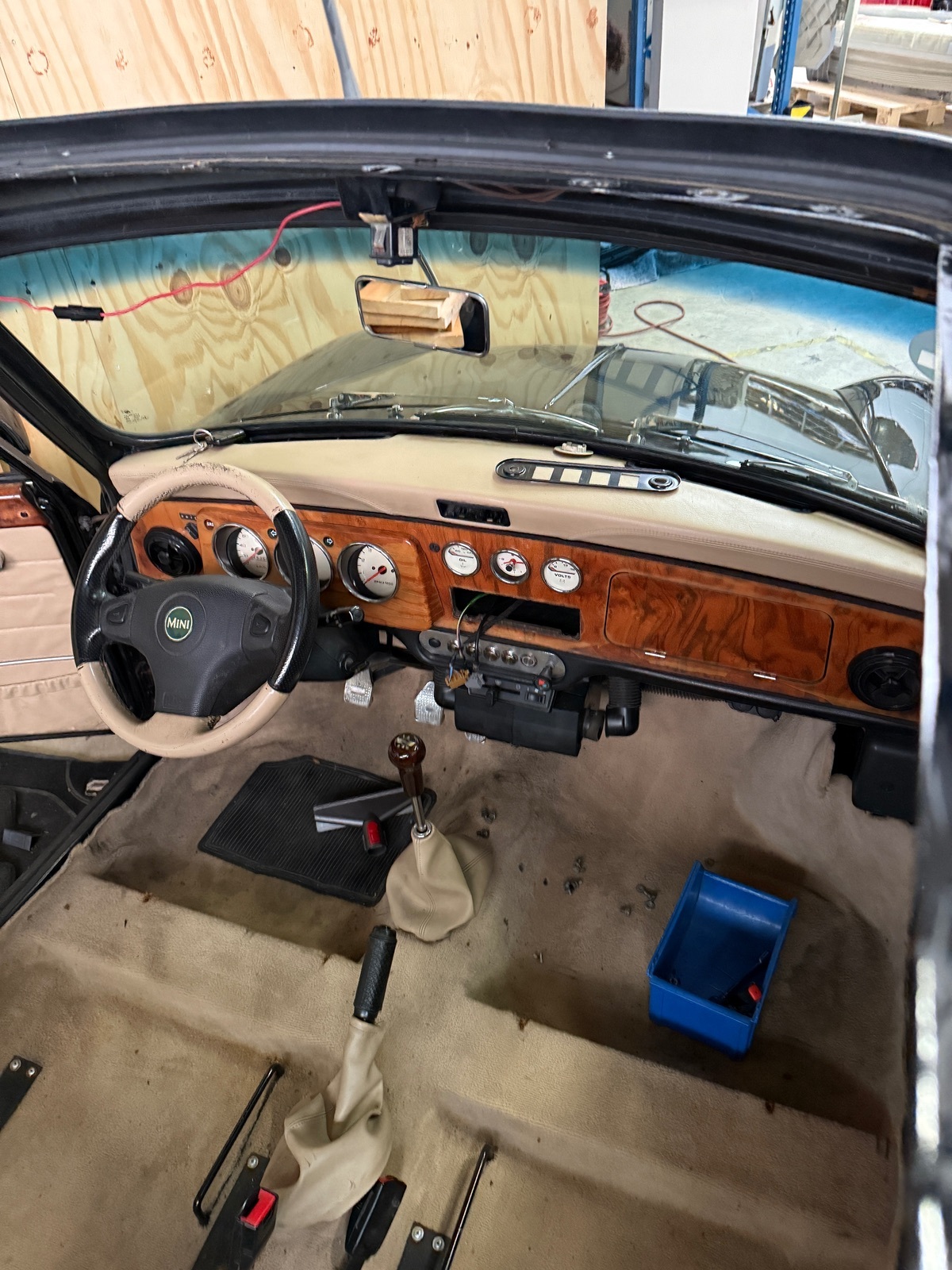 Und ja, alle Säulen, Himmel, Verdeck von innen, Kofferraumboden inkl. alle Scheiben rausnehmen und mit neuen Mini-Spares Dichtungen einbauen. Auch zusätzliches, wir das gelieferte Armaturenbrett einbauen …