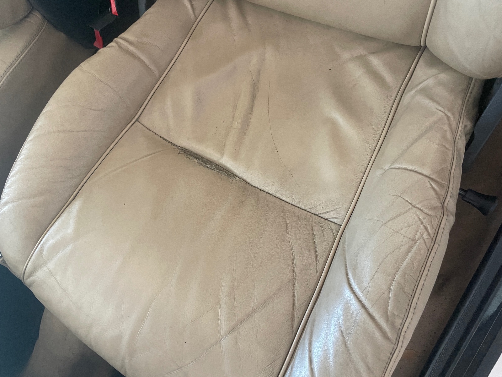 Der Innenraum war bescheiden. Leder gerissen, Himmel abgefallen, Teppich dreckig, Amaturenbrett nicht sehr schön usw. Sattler hier in der Gegend waren erstens teuer, zweitens hatten die keine Zeit und vielleicht Lust…
