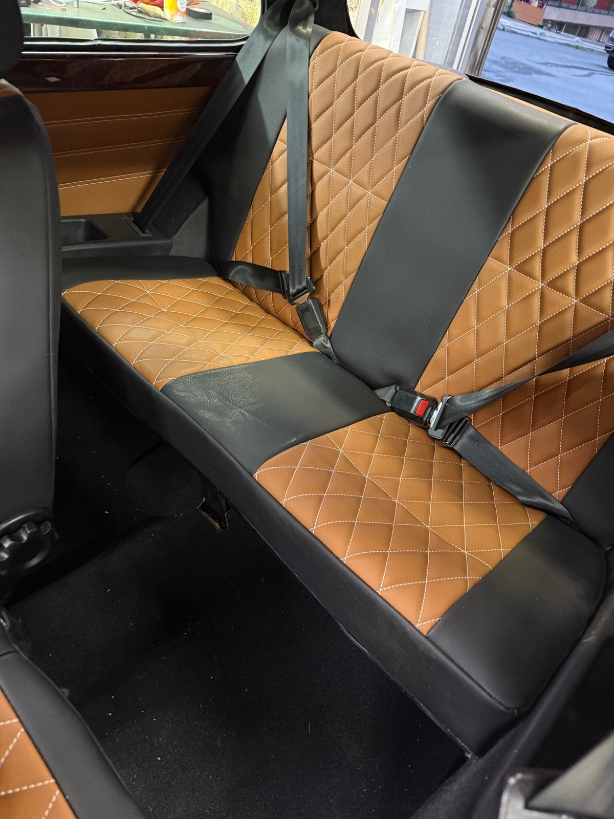 Also hab ich ein Paar Teile, wie Teppich und Dichtungen besorgt und hab den Wagen in den LKW gepackt. Auf dem Weg in den nahen Osten wurde das Auto in Istanbul abgestellt. Dort stand er bis vor ca. einem Minat in der Garage. Als ich dann irgendwann mal Zeit gefunden habe, bin ich hin geflogen und bin einige Sattler abgefahren. Der eine hatte Bock drauf, wir haben uns geeinigt und dann ging’s los.