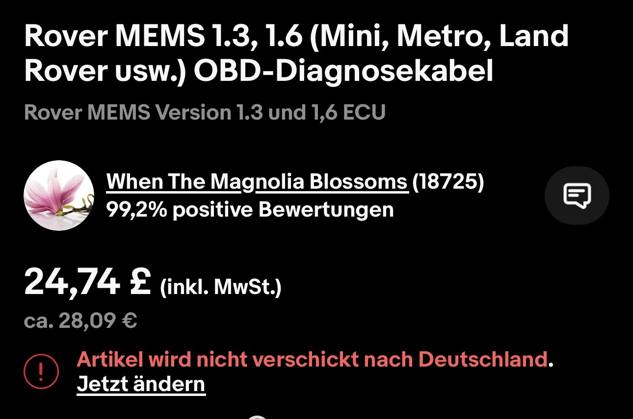Rover MEMS 1.3, 1.6 (Mini, Metro, Land Rover, etc) OBD Diagnostic Cable | eBay https://share.google/Exz3FVZkWcJ1t4TB3
