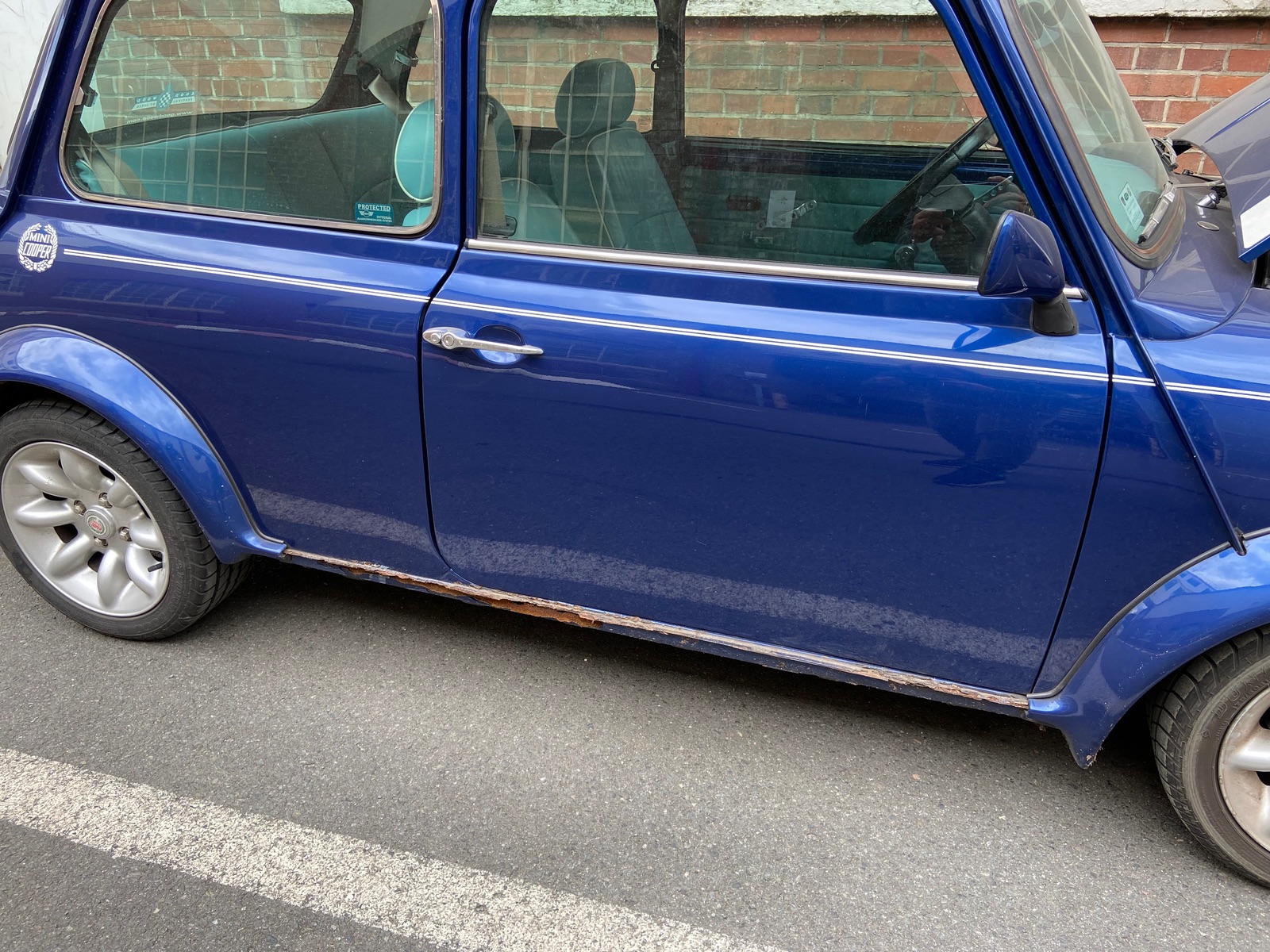 Wir haben den Mini seit Juni 2012. Der Mini wurde wenig, aber regelmäßig gefahren und hat nun leider - trotz beheizter Garage viel Rost. So dass wir uns schweren Herzens dazu entschieden haben ihn nach 11 Jahren zu verkaufen. Er hat keinen TÜV mehr, ist aber fahrbereit. Technik ist gut (bis auf den Auspuff). Karosserie muss komplett überarbeitet werden – siehe Fotos.