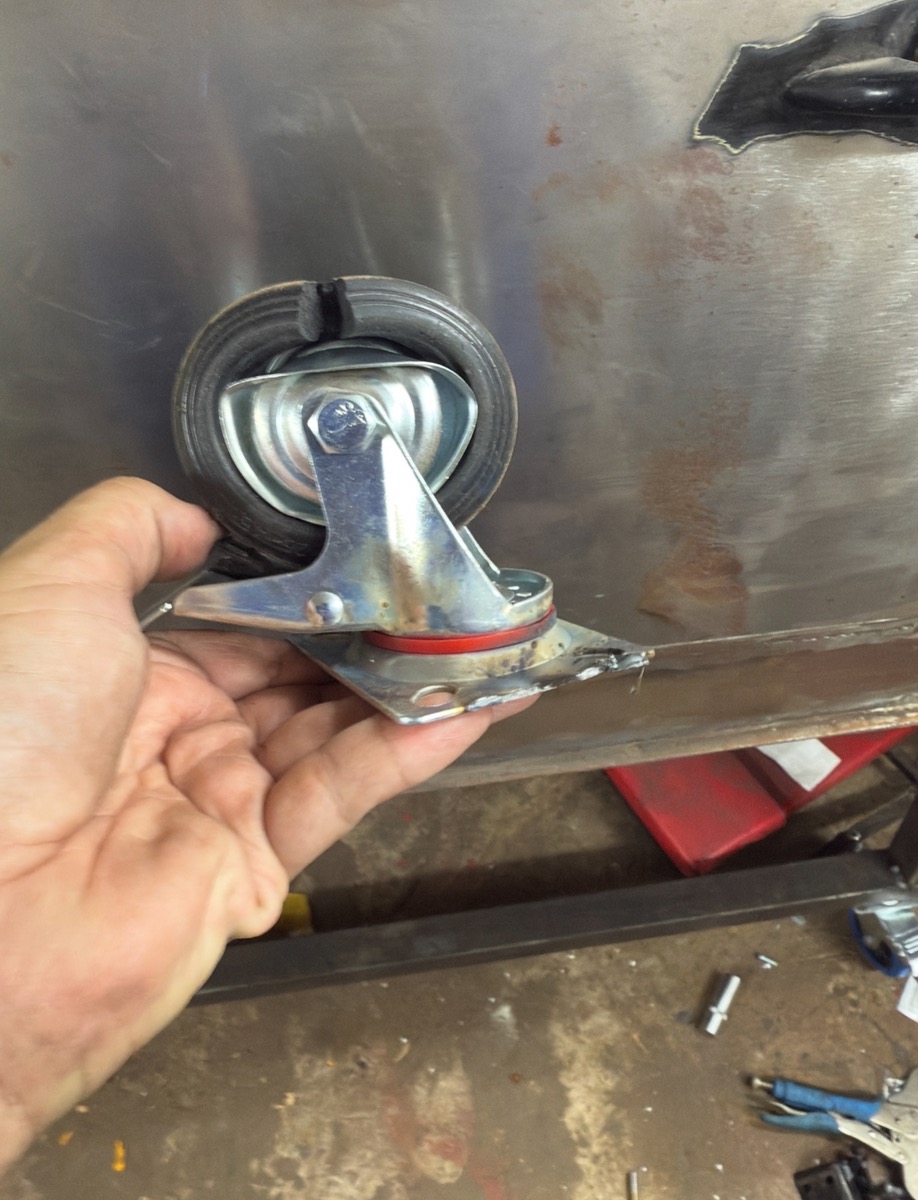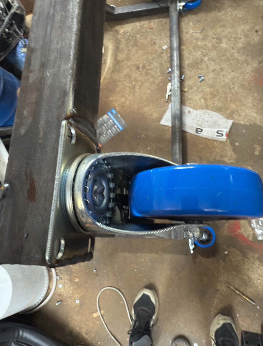 Ein paar Knotenbleche in die Ecken vom Gestell geschweisst und dann hält das länger als die Rollen......![]()