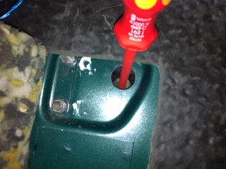 die beiden neuen (längeren) Schrauben an der Halteplatte