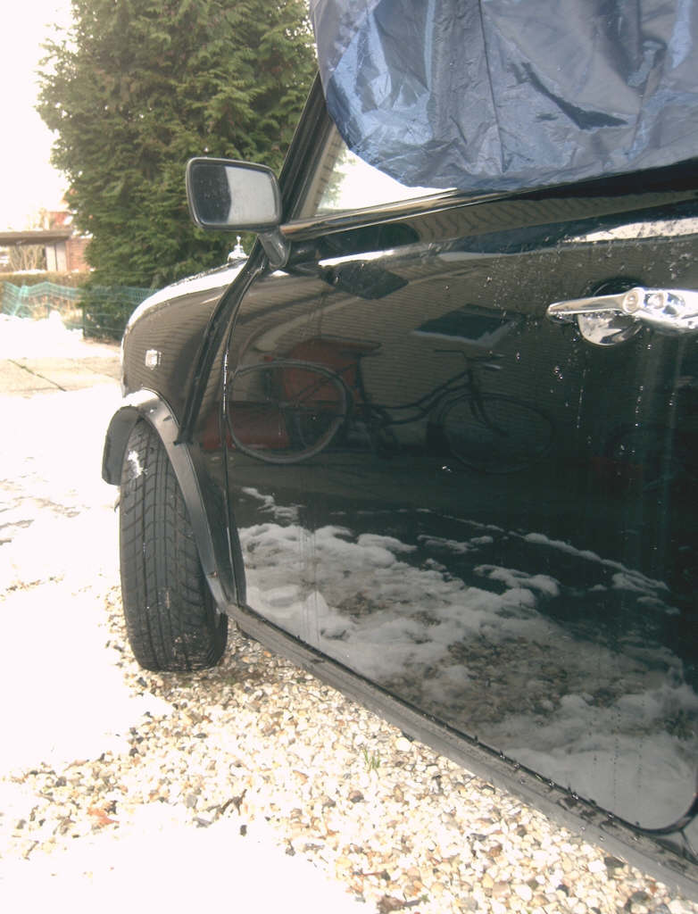 der Mini ist noch zu haben, hier ein paar aktuelle Bilder vom Scheibenrahmen, Dreiecksbleche/ Türen und den Bereichen unter den Scheinwerfern. Leider mit etwas Tauwasser vom Schnee...