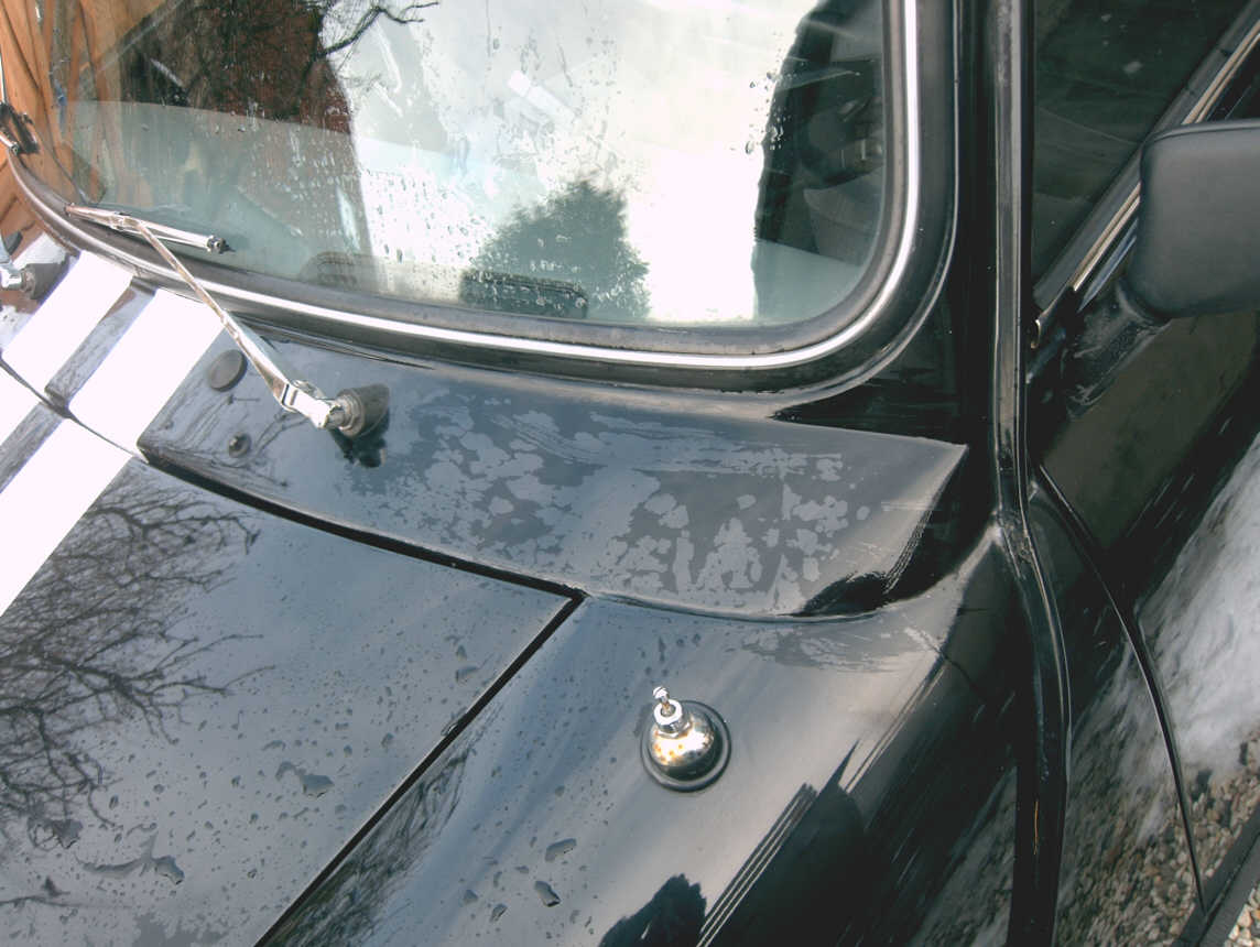 -für den letzten TÜV wurde von einer (minifahrenden) Oldtimerwerkstatt Rost am Kotflügel und an den Scheinwerfern entfernt und nachlackiert. Der Lack ist hier matter als der Originallack,