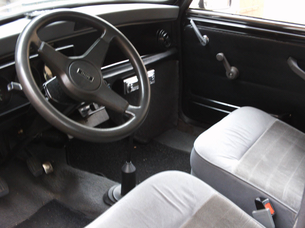 Beschreibung: nachgerüsteter Edelstahl G-Kat, Doppelrohrauspuff (mittig), Alufelgen mit neuer 165er Bereifung, weiße Front- und Seitenblinker, Chromscheibenwischer, Sony CD/ MP3 Radio, Magnat Endstufe, Hifonics Lautsprecher, geklebte weiße Streifen (siehe Foto)