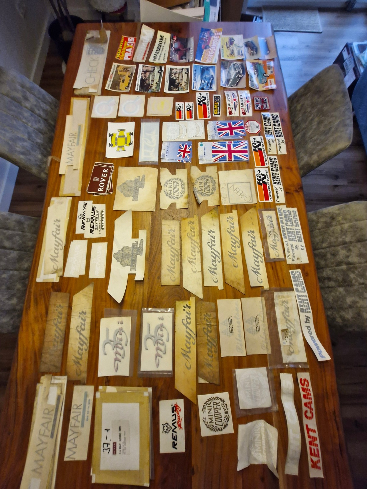 Verschiedene neue und NOS Aufkleber und gebrauchte Schilder.