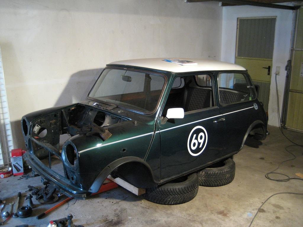 Fertig ist er noch lange nicht, wird ein Mini wohl auch nie sein. Klassische Schalensitze sind schon bestellt und weitere Verschönerungen, Verbesserungen usw. in Planung. Zwischenzeitlich habe ich mich dann auch mal um das Blechkleid gekümmert und ihm zu altem Glanz verholfen.