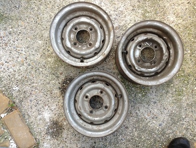 3 Stk. Cooper S Stahlfelgen LP 918 4,5 x 10 (Dunlopzeichen ist neben der Größe eingeschlagen) € 120.-